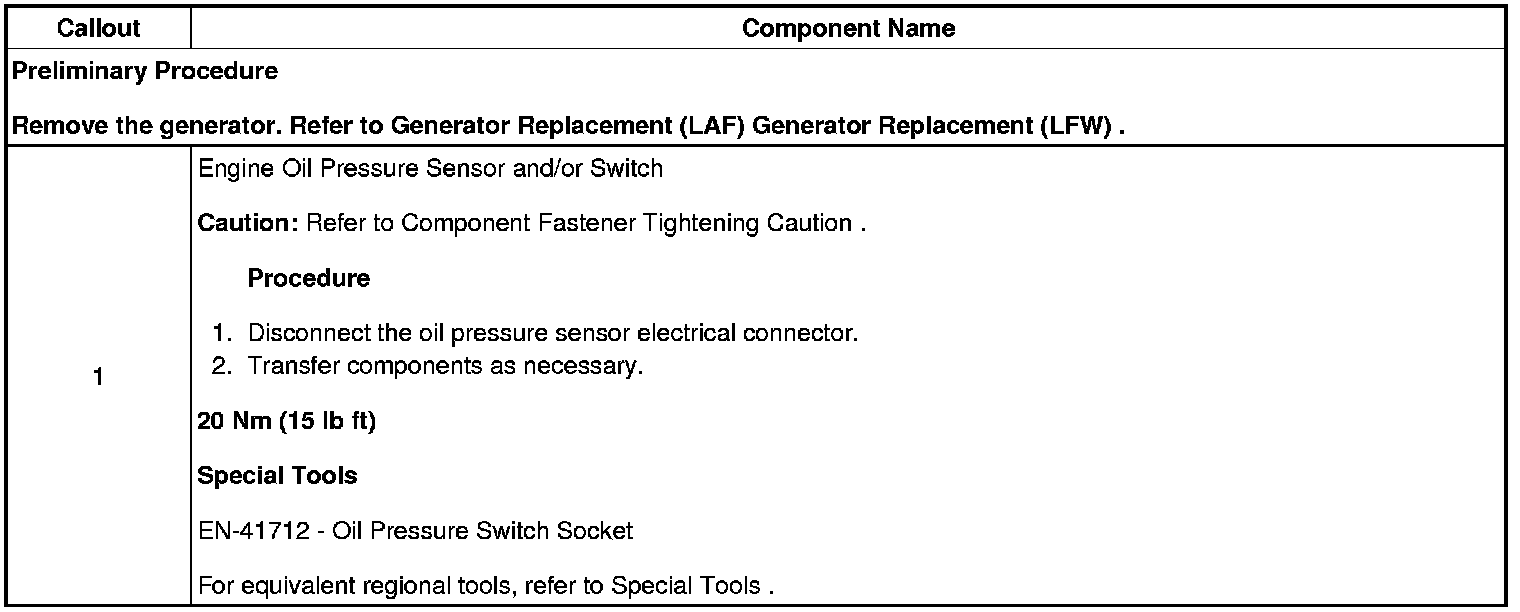 Engine Oil Pressure Sensor and/or Switch Replacement (LF1 or LFW)