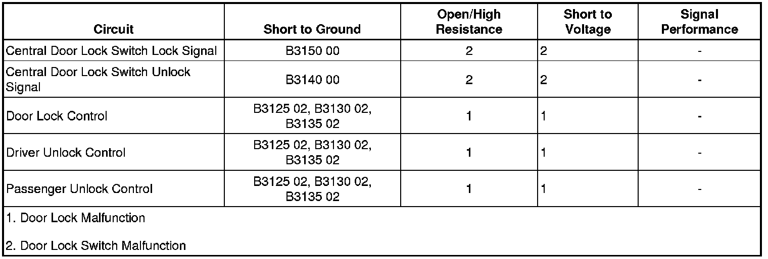 • If a door does not LOCK or UNLOCK, refer to Door Lock Malfunction.
