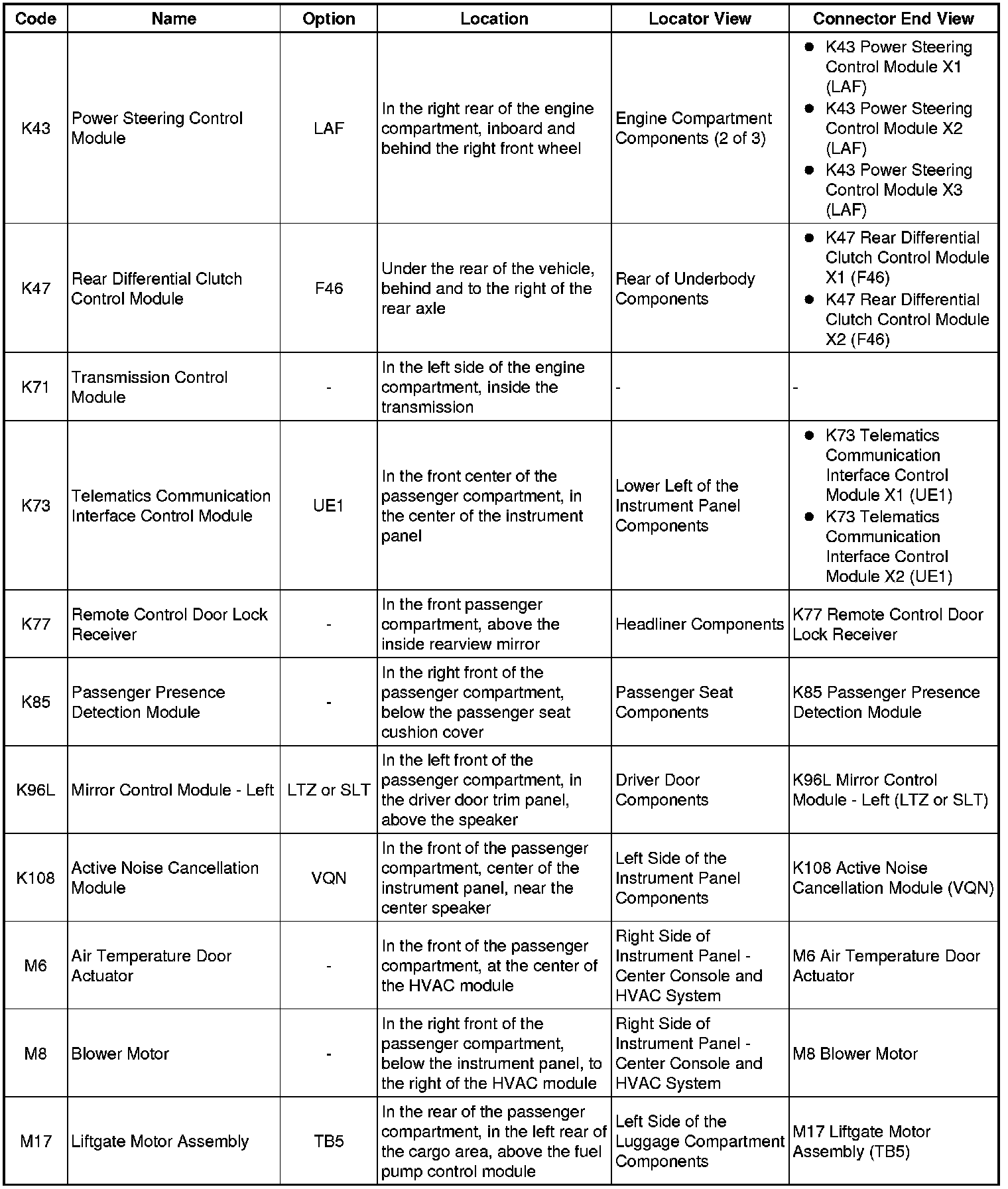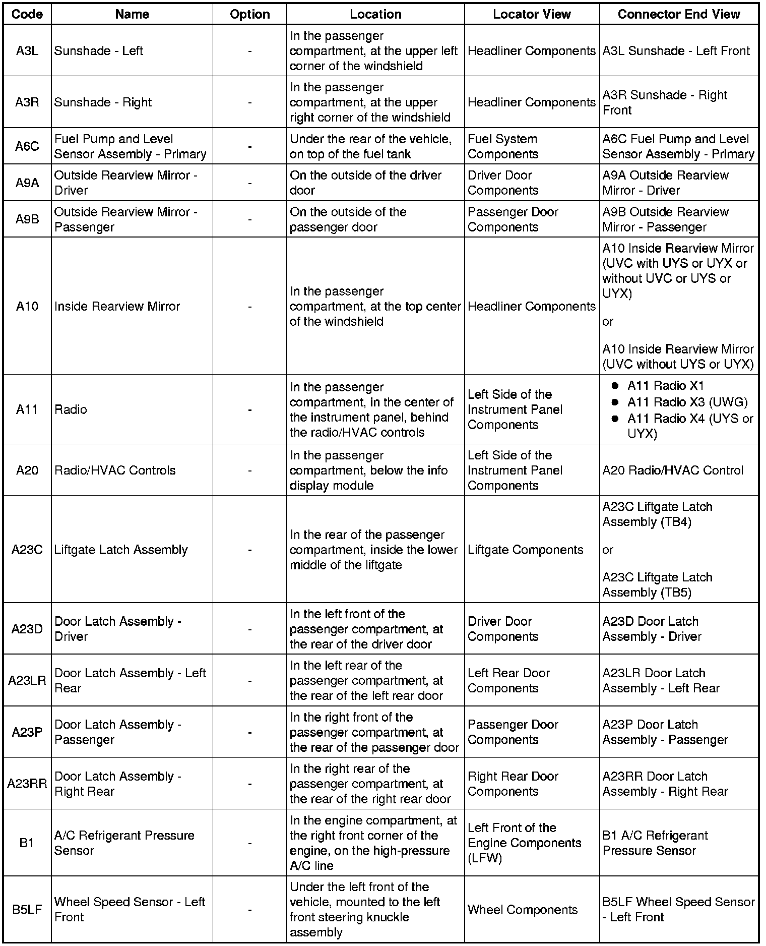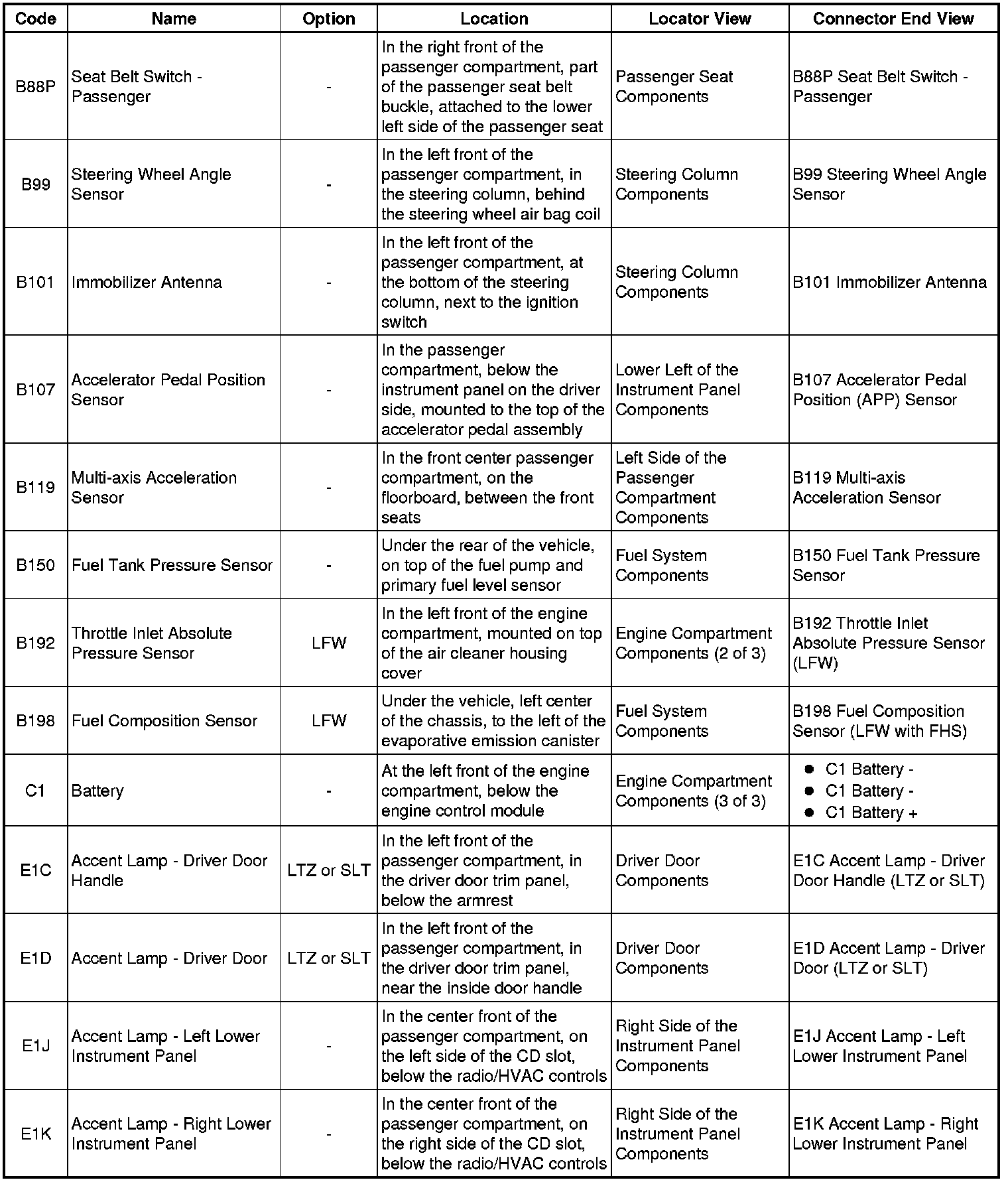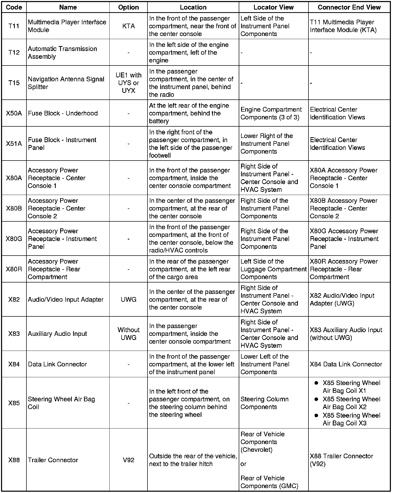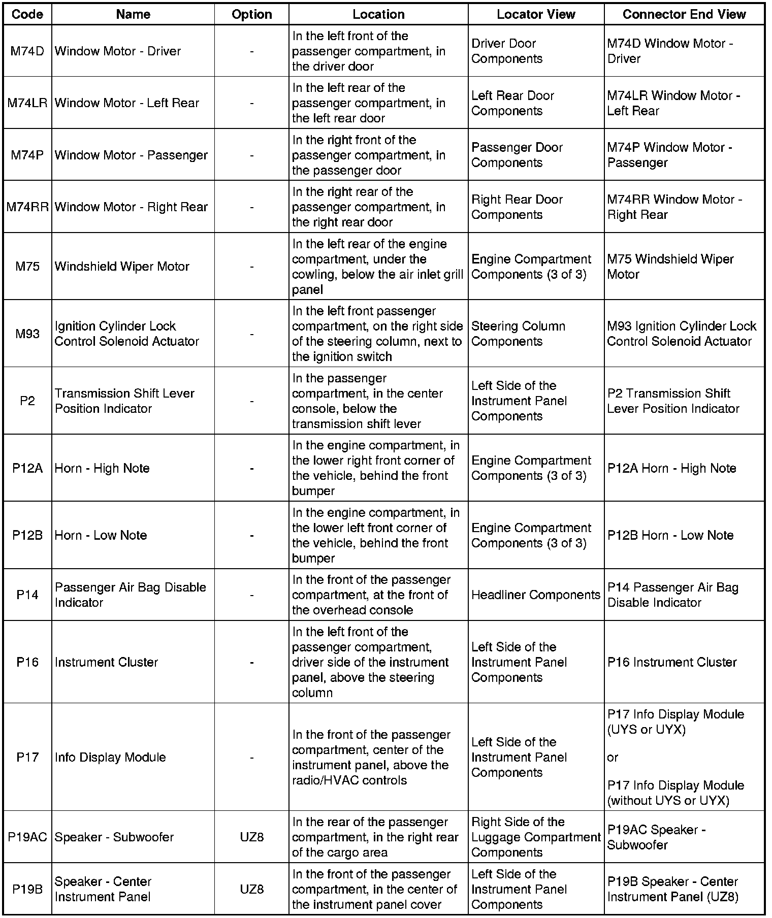 Master Electrical Component List