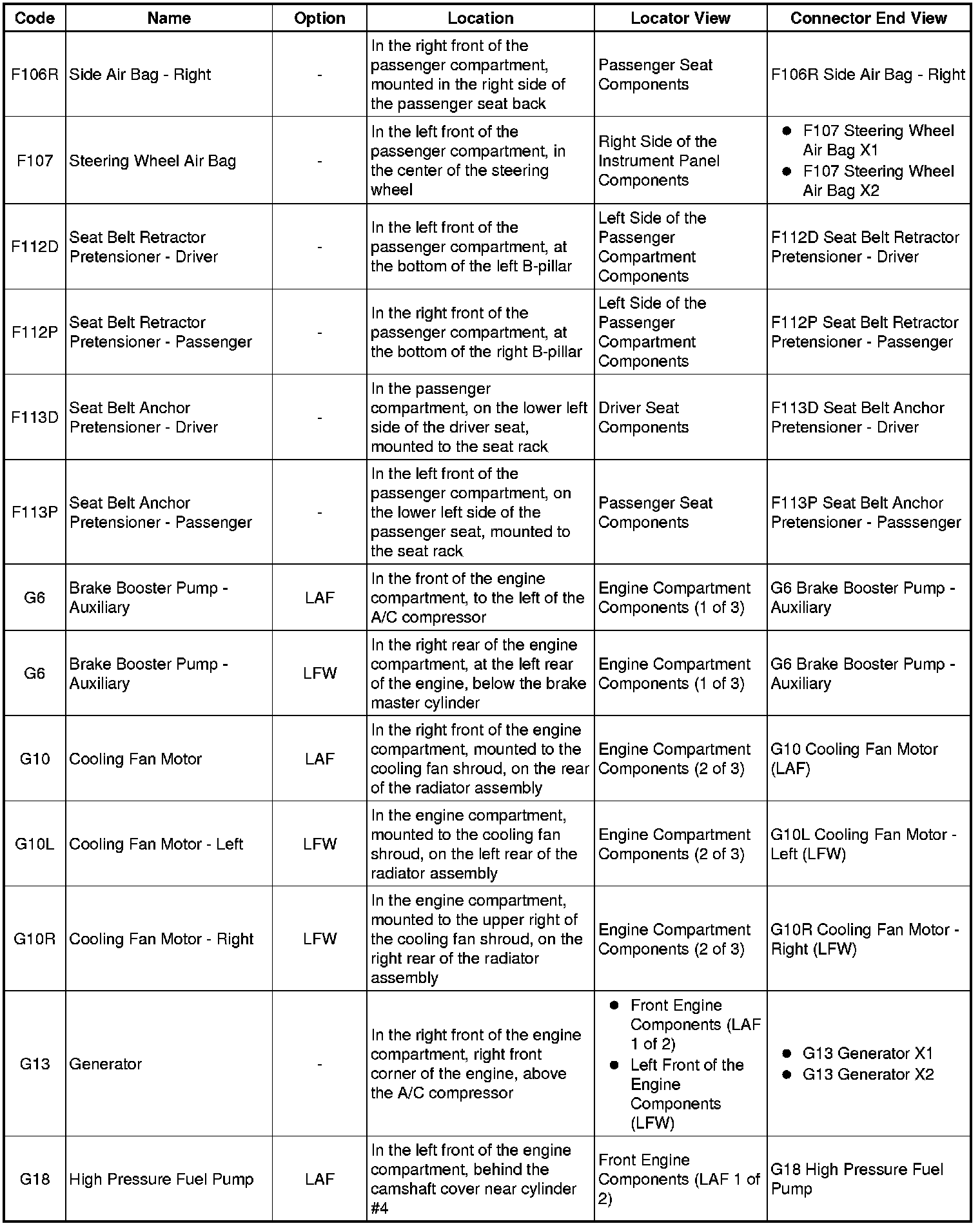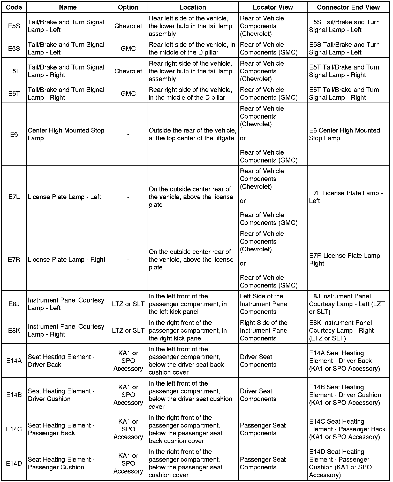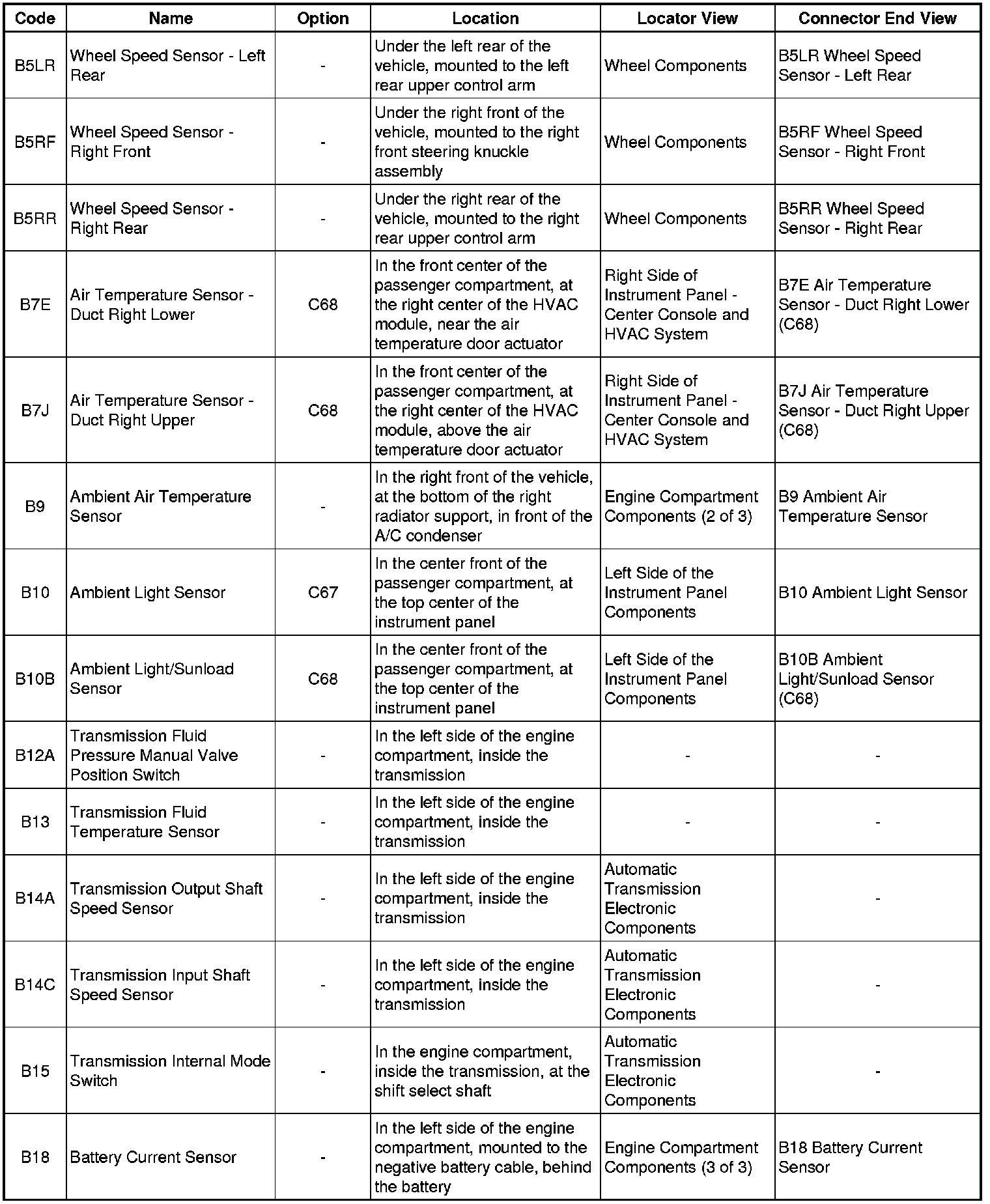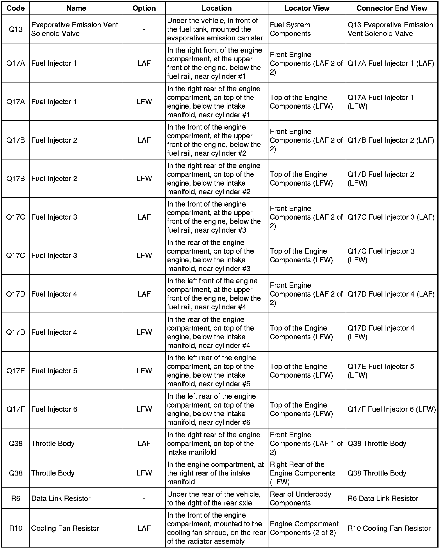 Master Electrical Component List