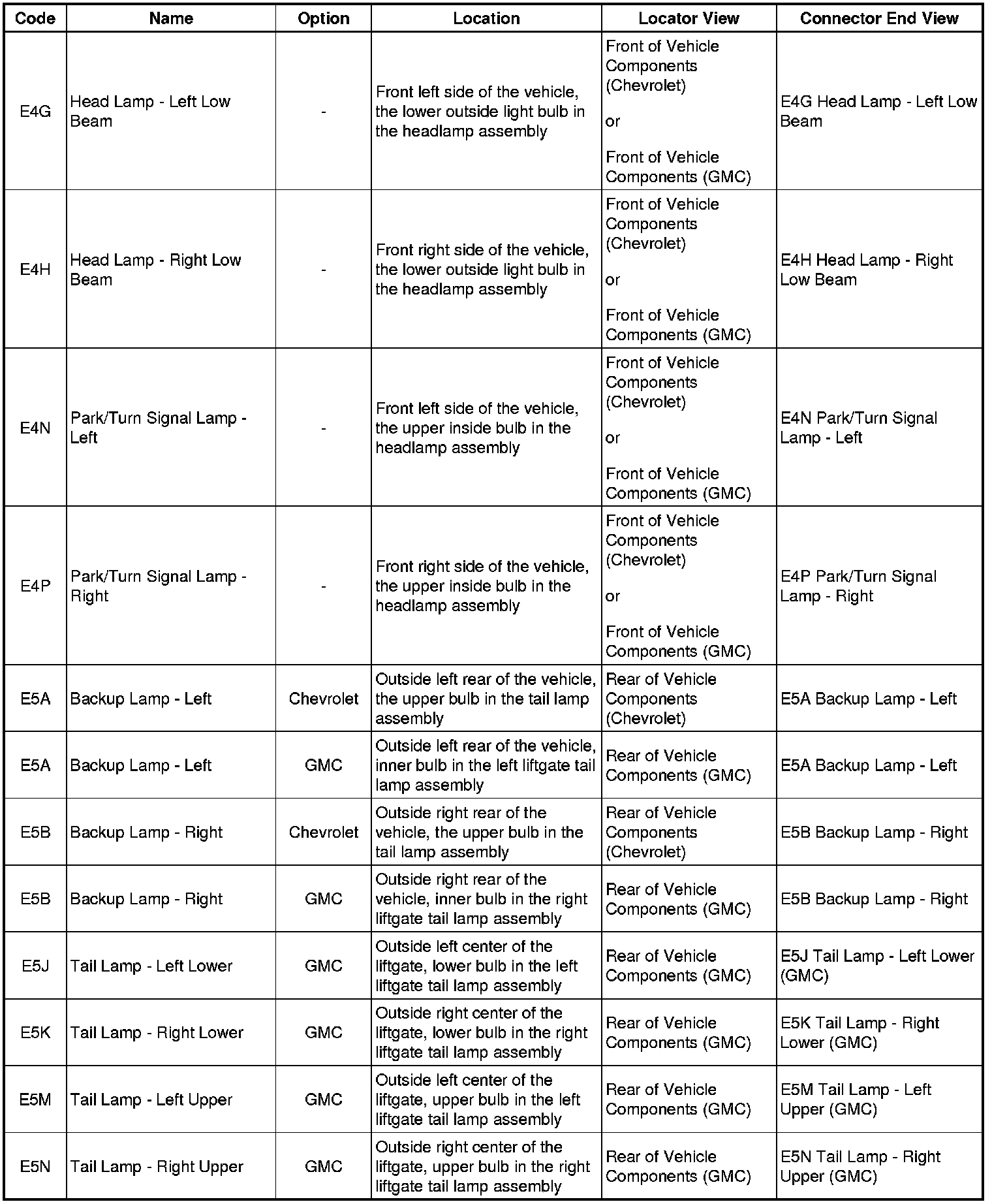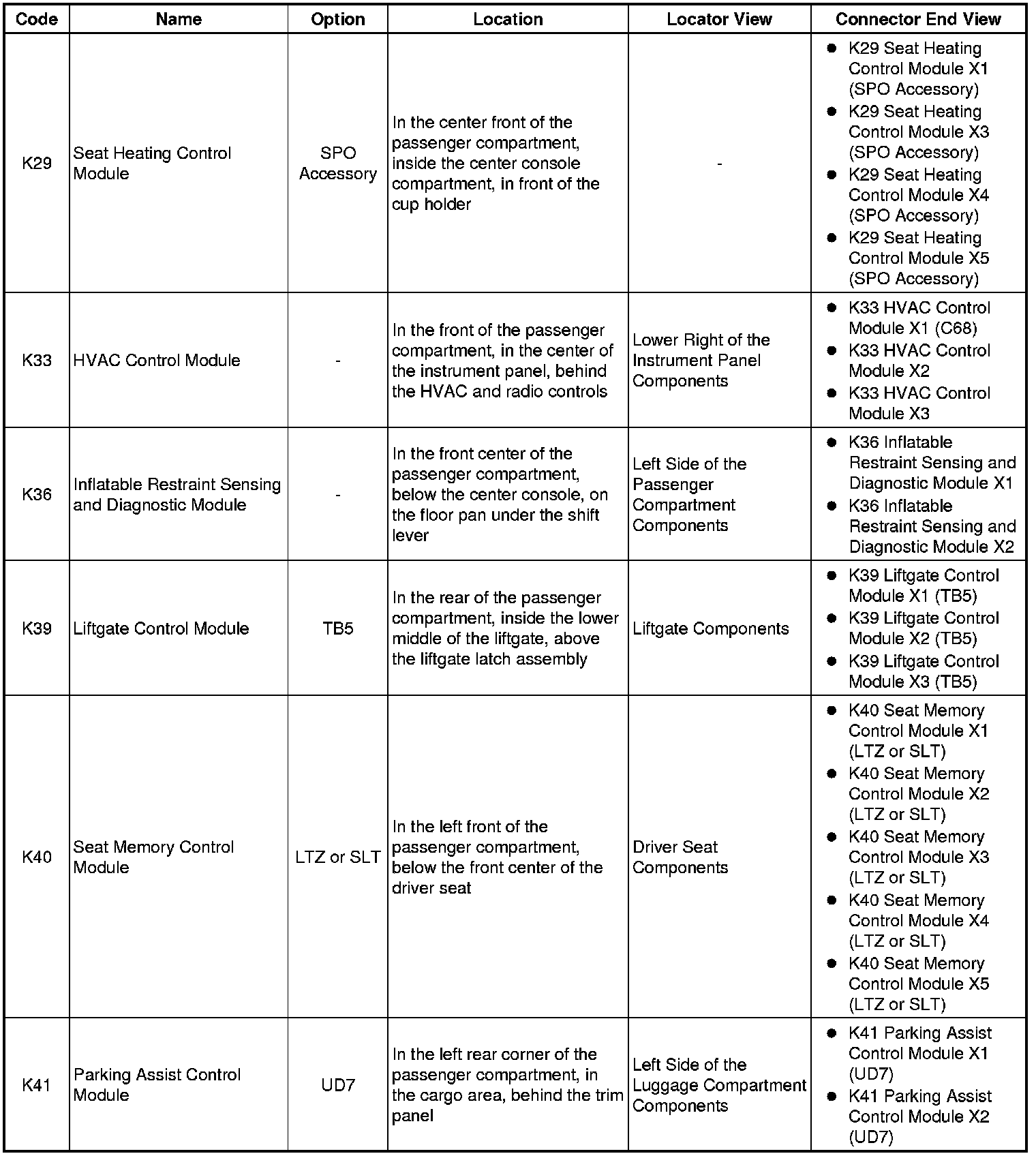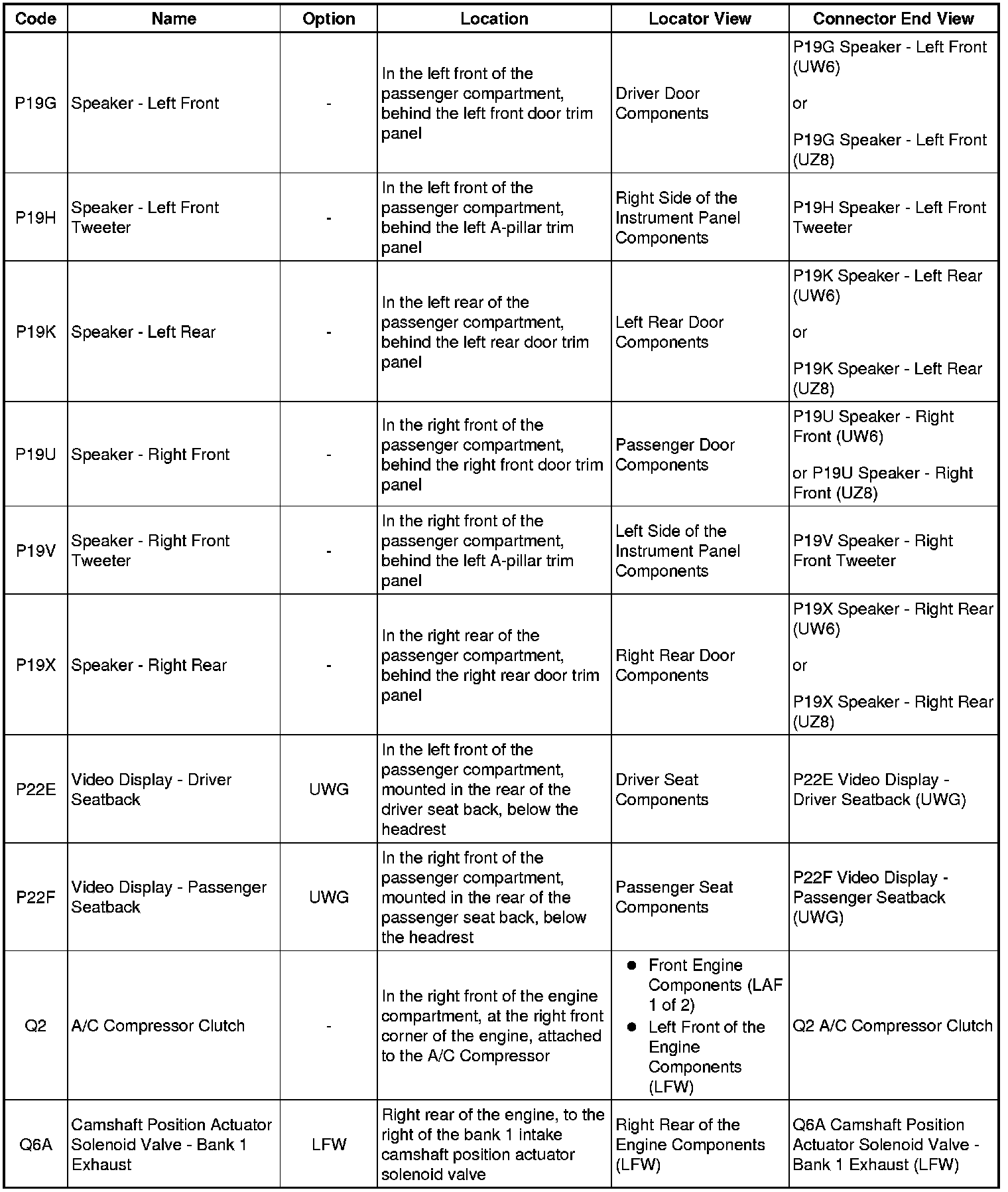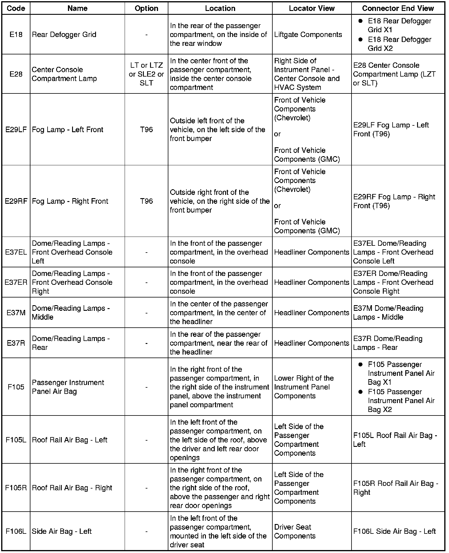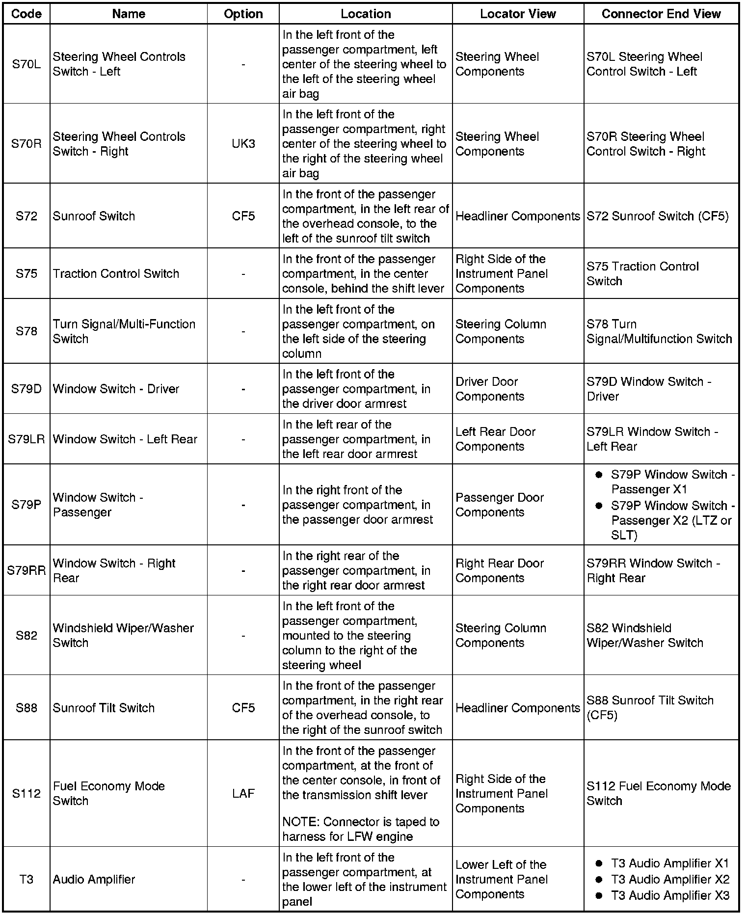 Master Electrical Component List