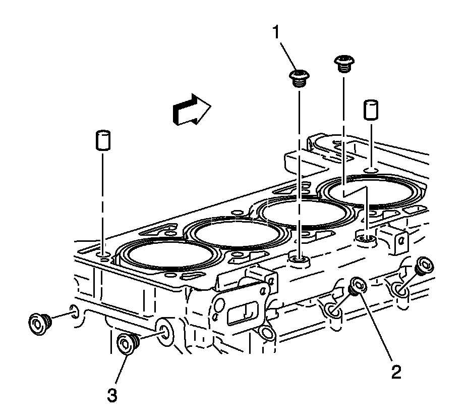 1. Apply sealant to all plugs (1, 2, 3) prior to installation. Refer to Adhesives, Fluids, Lubricants, and Sealers (Adhesives, Fluids, Lubricants, and Sealers).