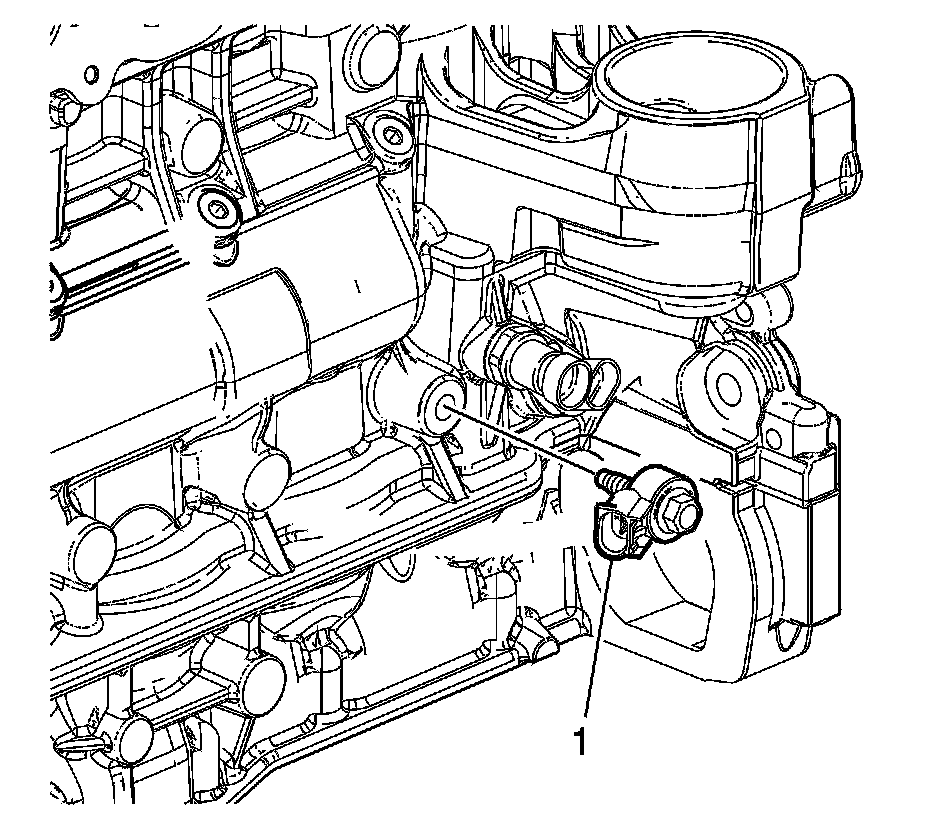 9. Install the knock sensor (1) and bolt and tighten to 25 Nm (18 lb ft).