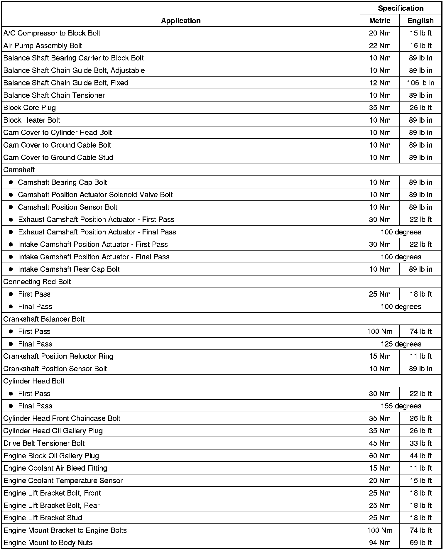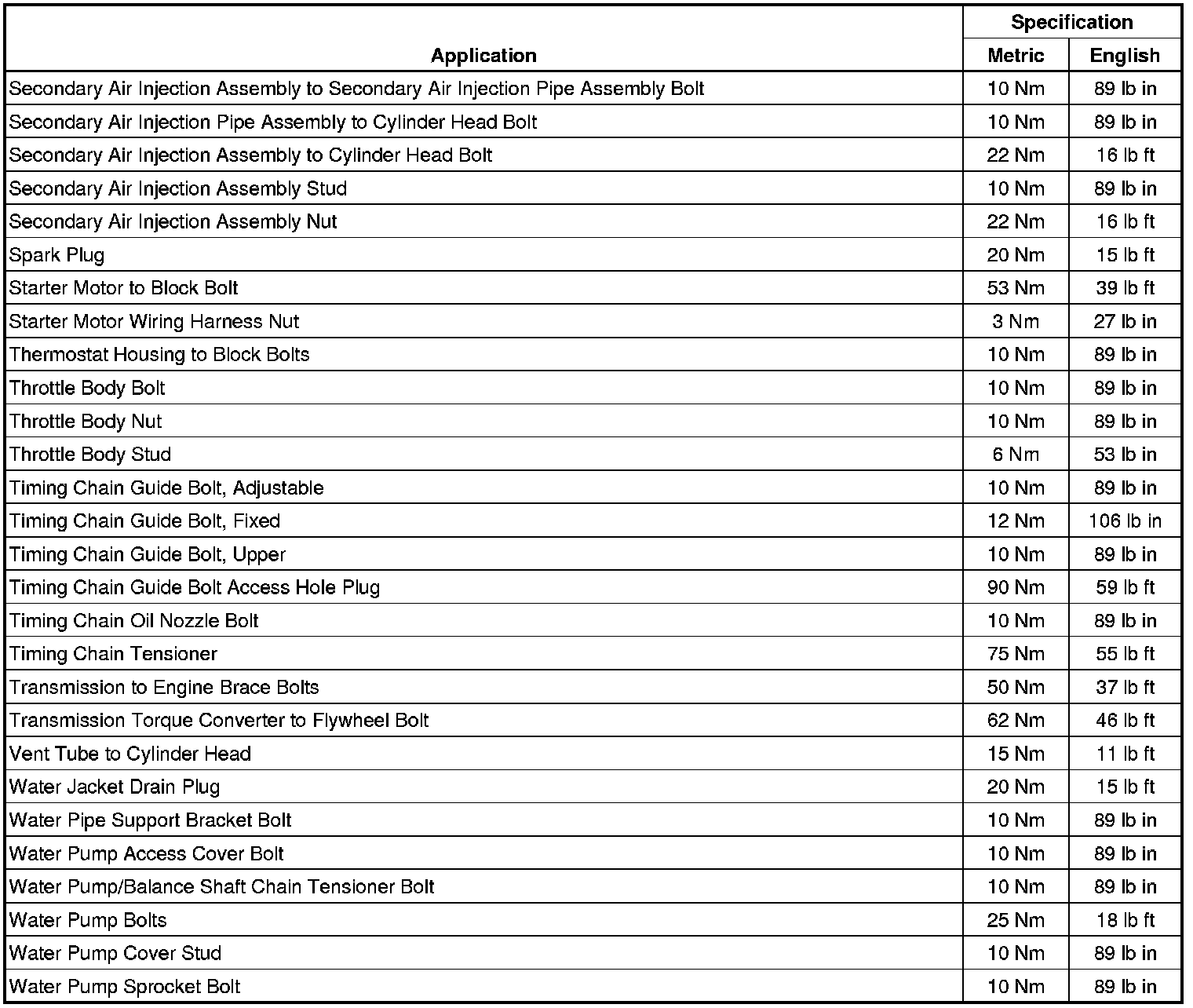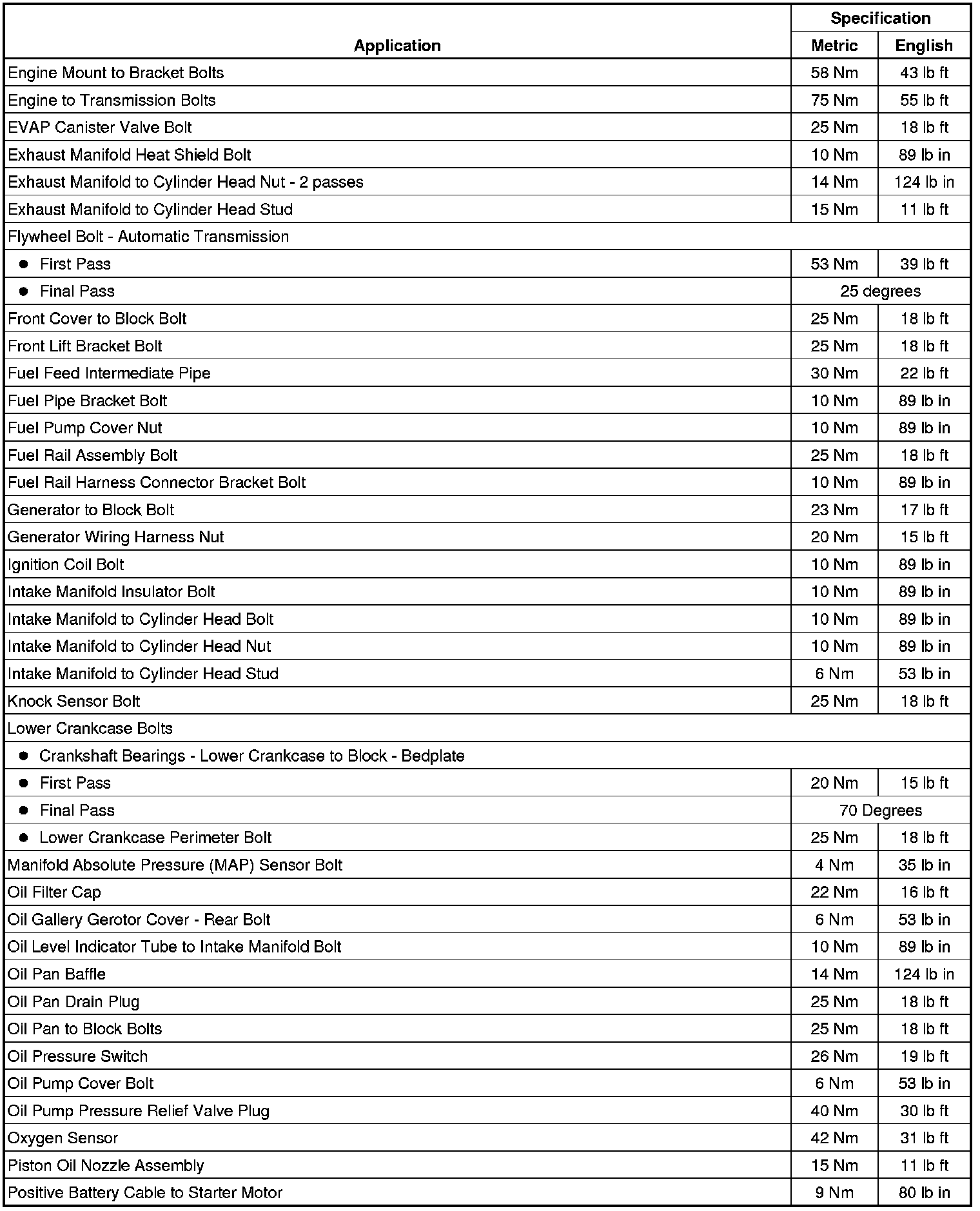 Fastener Tightening Specifications (LAF)