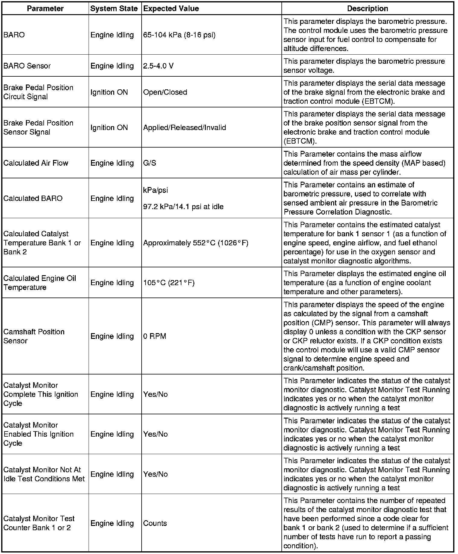 The Engine Control Module Scan Tool Data List contains all engine-related parameters that are available on the scan tool. The list is arranged in alphabetical order. A given parameter may appear in any one of the data lists, and in some cases may appear more than once, or in more than one data list in order to group certain related parameters together.
