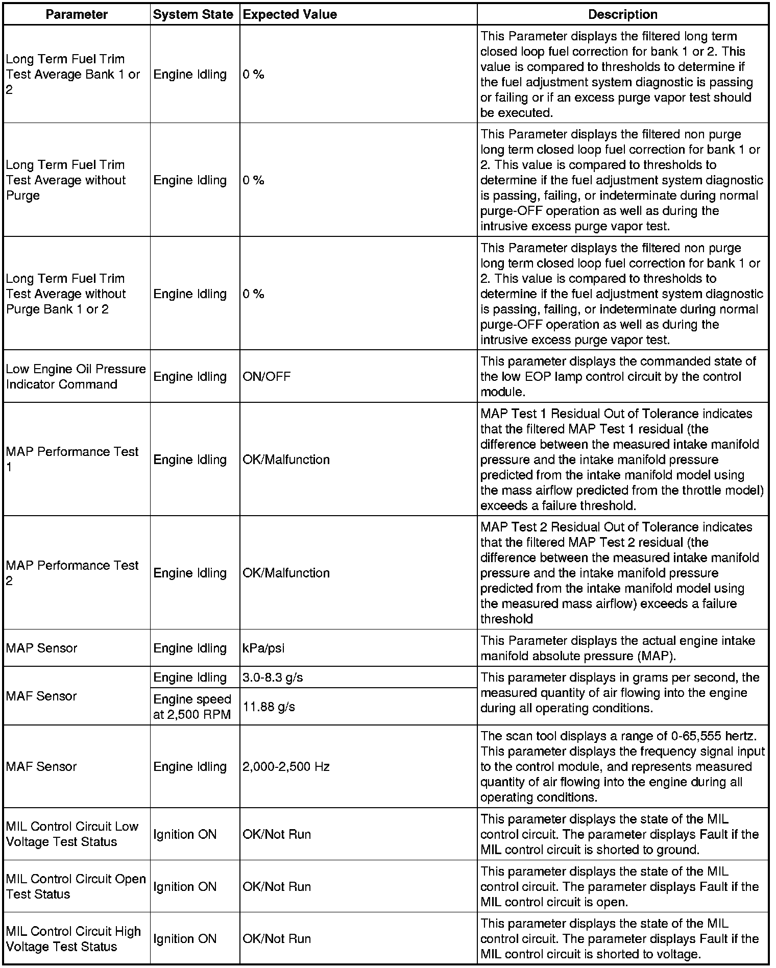 The scan tool values from a properly running engine may be used for comparison with the engine you are diagnosing. The Engine Scan Tool Data List represents values that would be seen on a normally running engine.