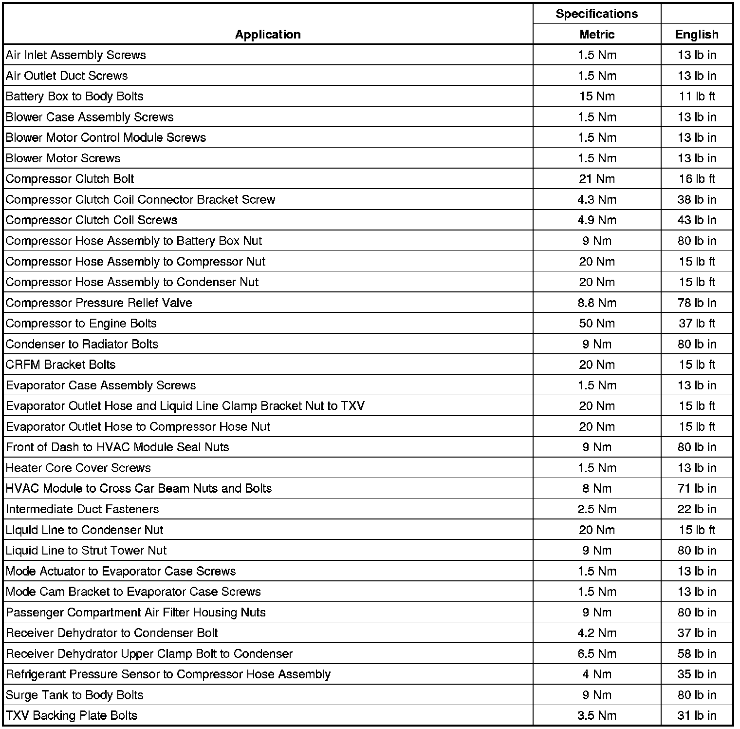 Fastener Tightening Specifications