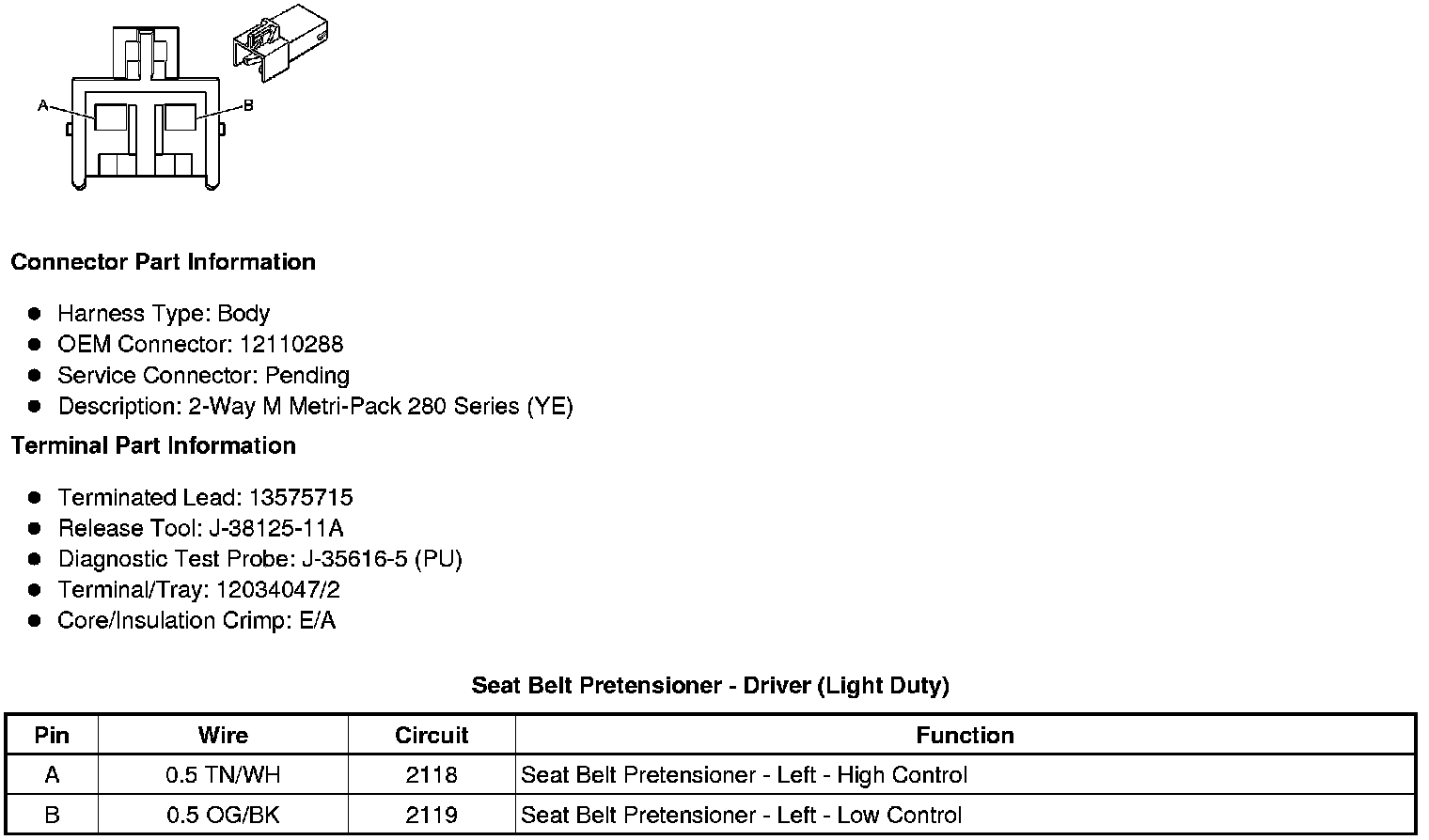 Seat Belt Pretensioner - Driver (Light Duty)