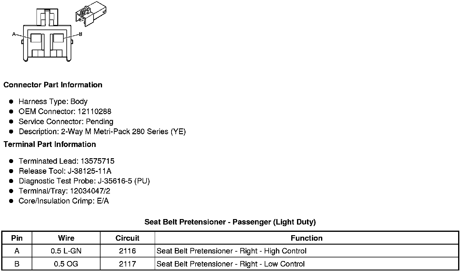 Seat Belt Pretensioner - Passenger (Light Duty)