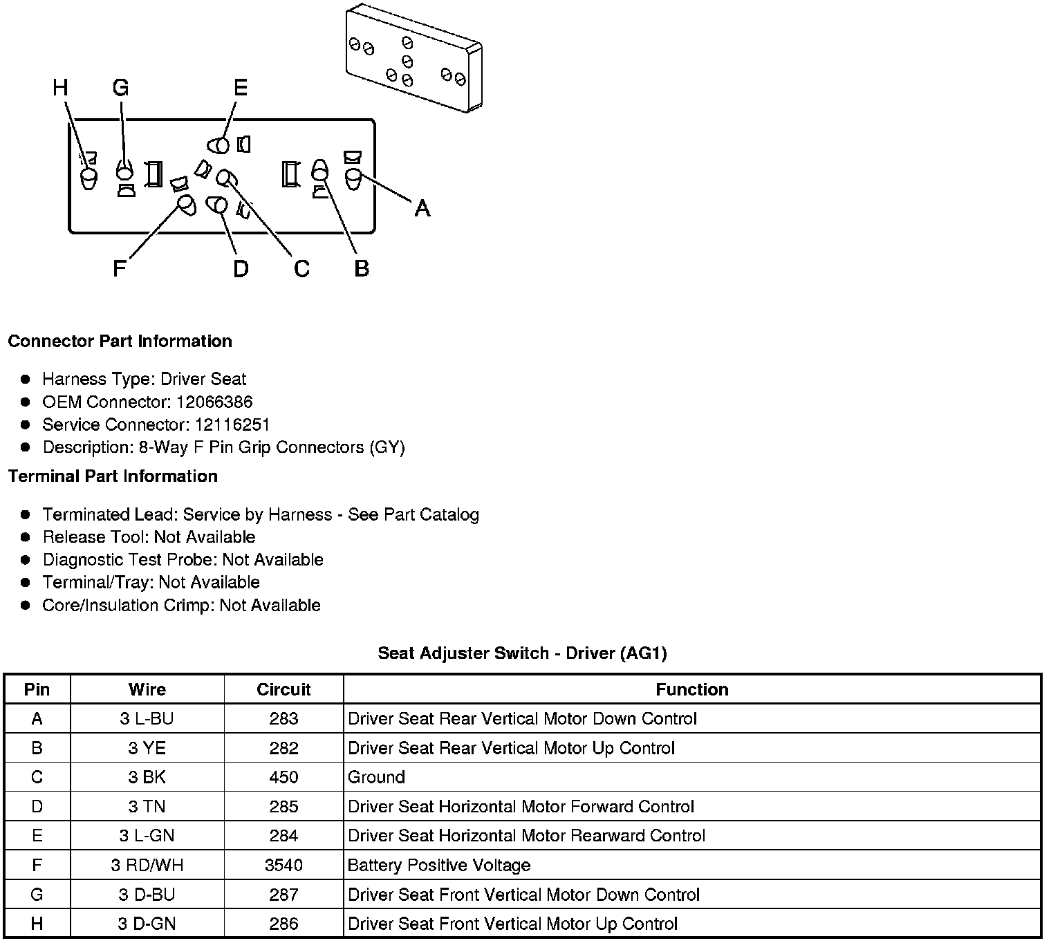 Seat Adjuster Switch - Driver (AG1)