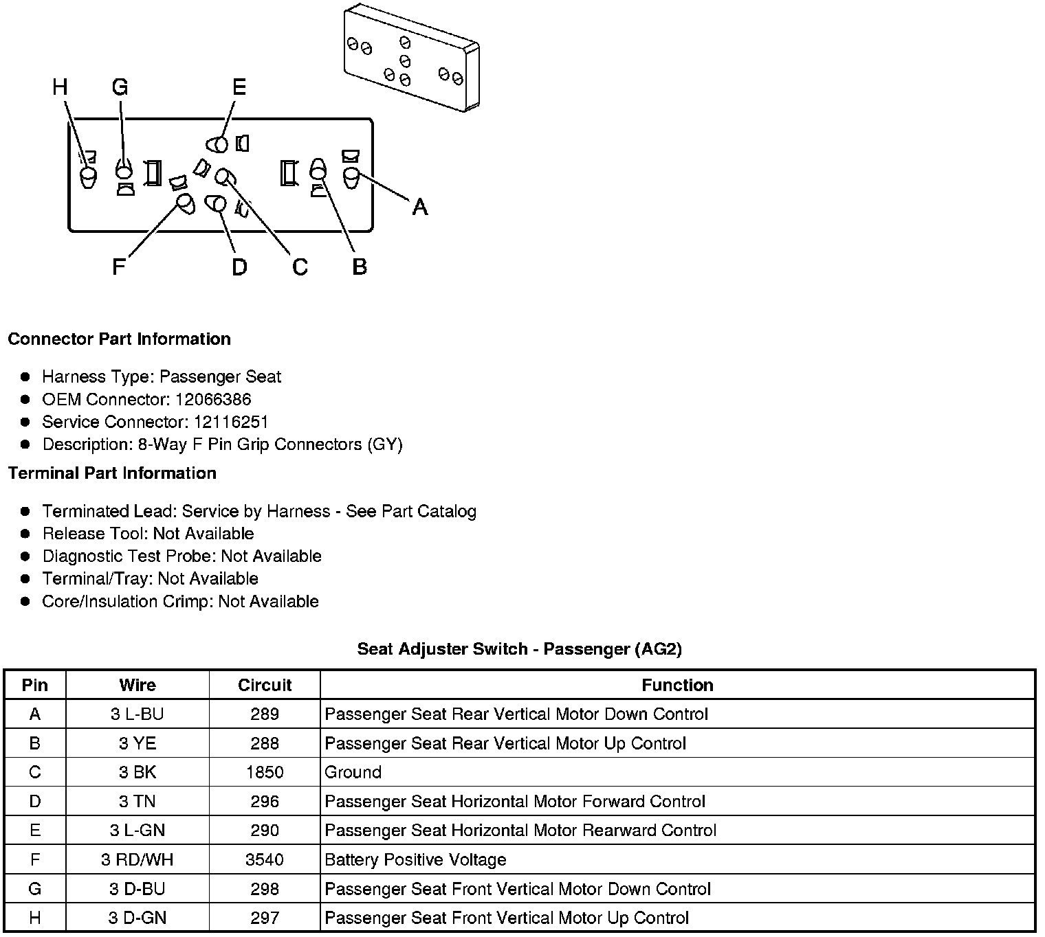 Seat Adjuster Switch - Passenger (AG2)