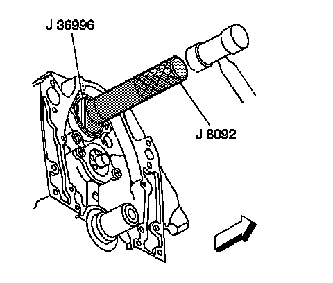 2. Using J 36996 and J 8092 , install the balance shaft.