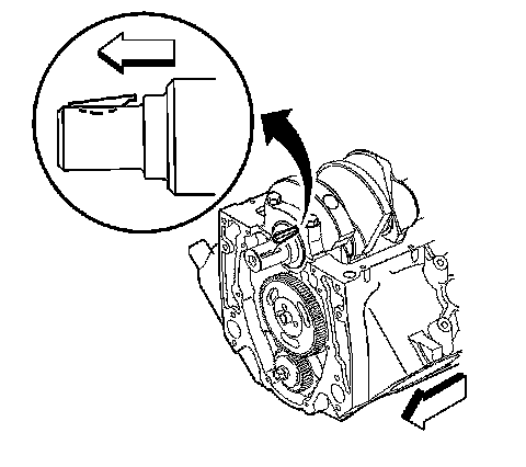 Note: Do not use a hammer to install the camshaft sprocket onto the camshaft. To do so may dislodge the expansion cup plug, camshaft rear bearing hole.