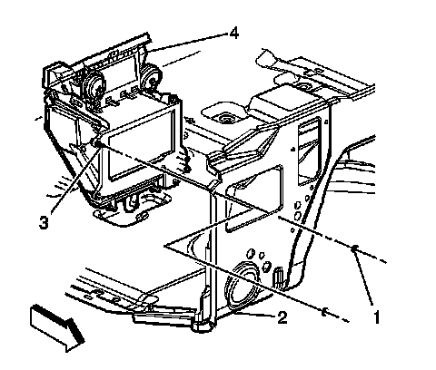 6. Install the evaporator and blower module assembly. Refer to Air Conditioning (A/C) Evaporator and Blower Module Assembly Replacement (Air Conditioning (A/C) Evaporator and Blower Module Assembly Replacement).