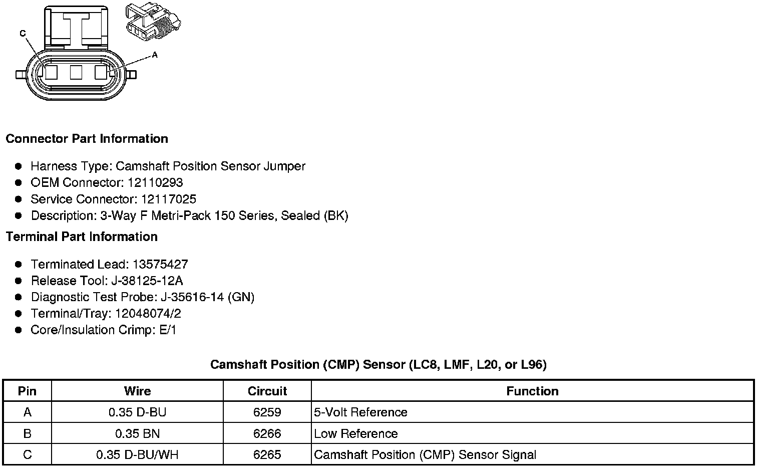 Camshaft Position (CMP) Sensor (LC8, LMF, L20, or L96)