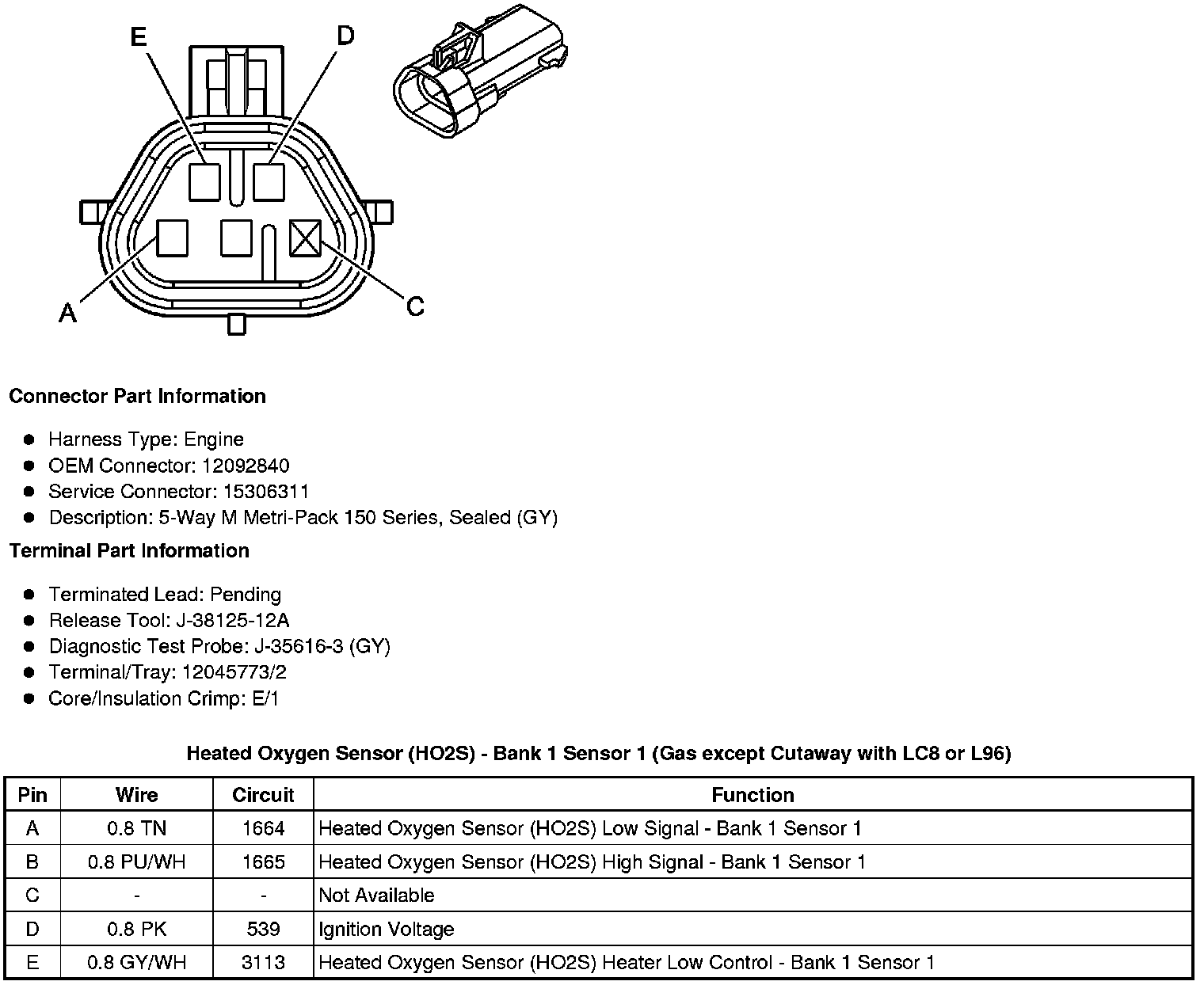 Heated Oxygen Sensor (HO2S) - Bank 1 Sensor 1 (Gas except Cutaway with LC8 or L96)