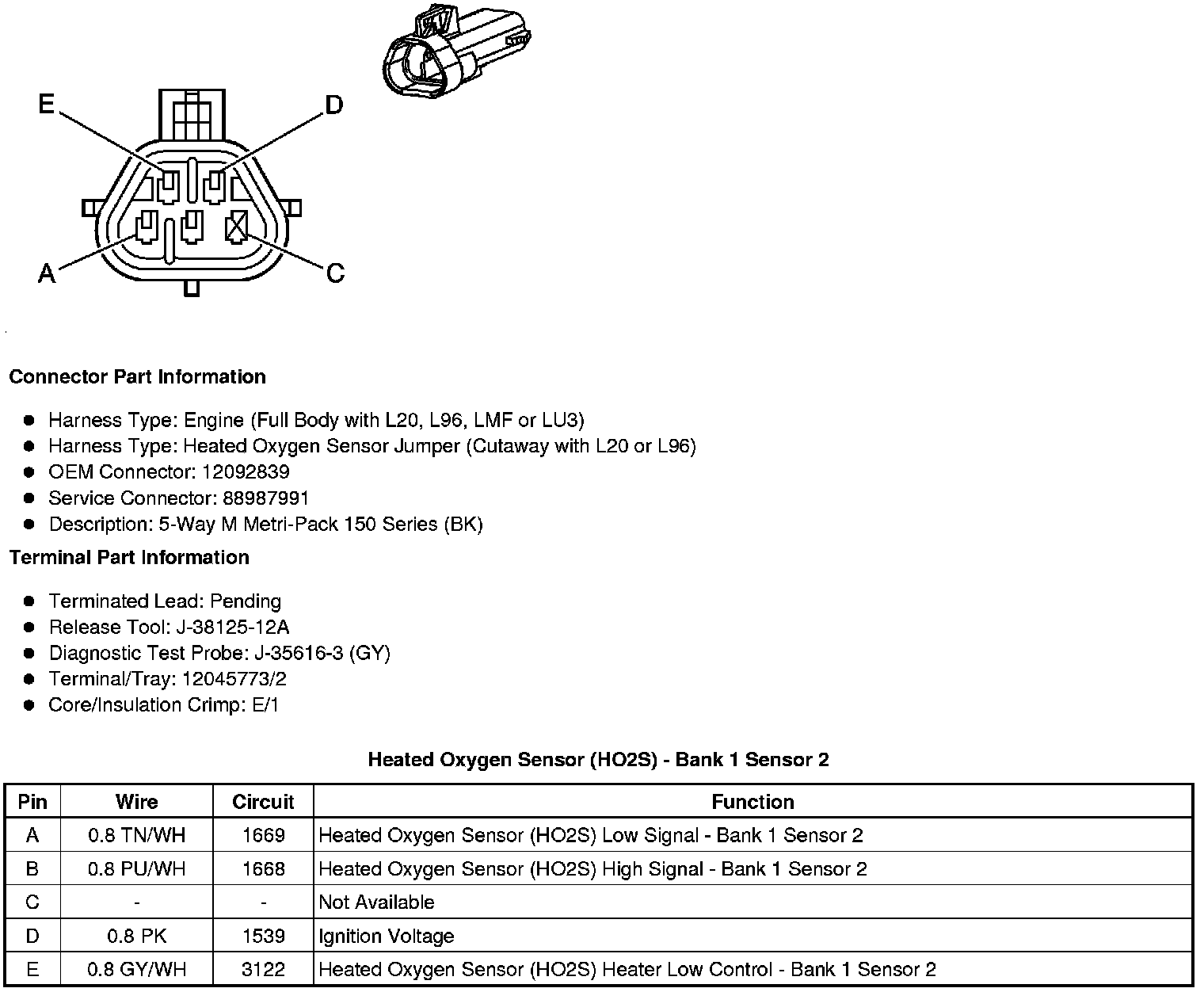 Heated Oxygen Sensor (HO2S) - Bank 2 Sensor 1 (Cutaway with LC8 or L96)