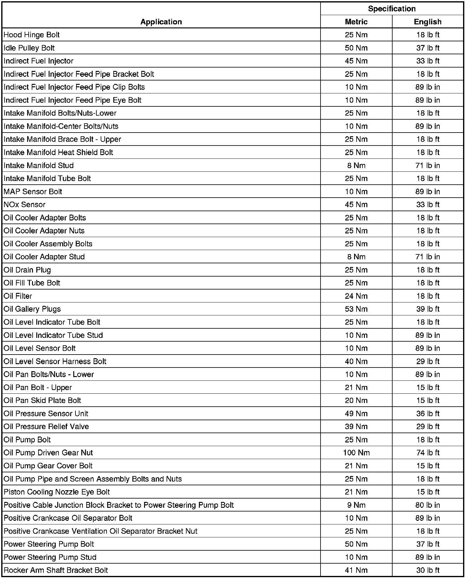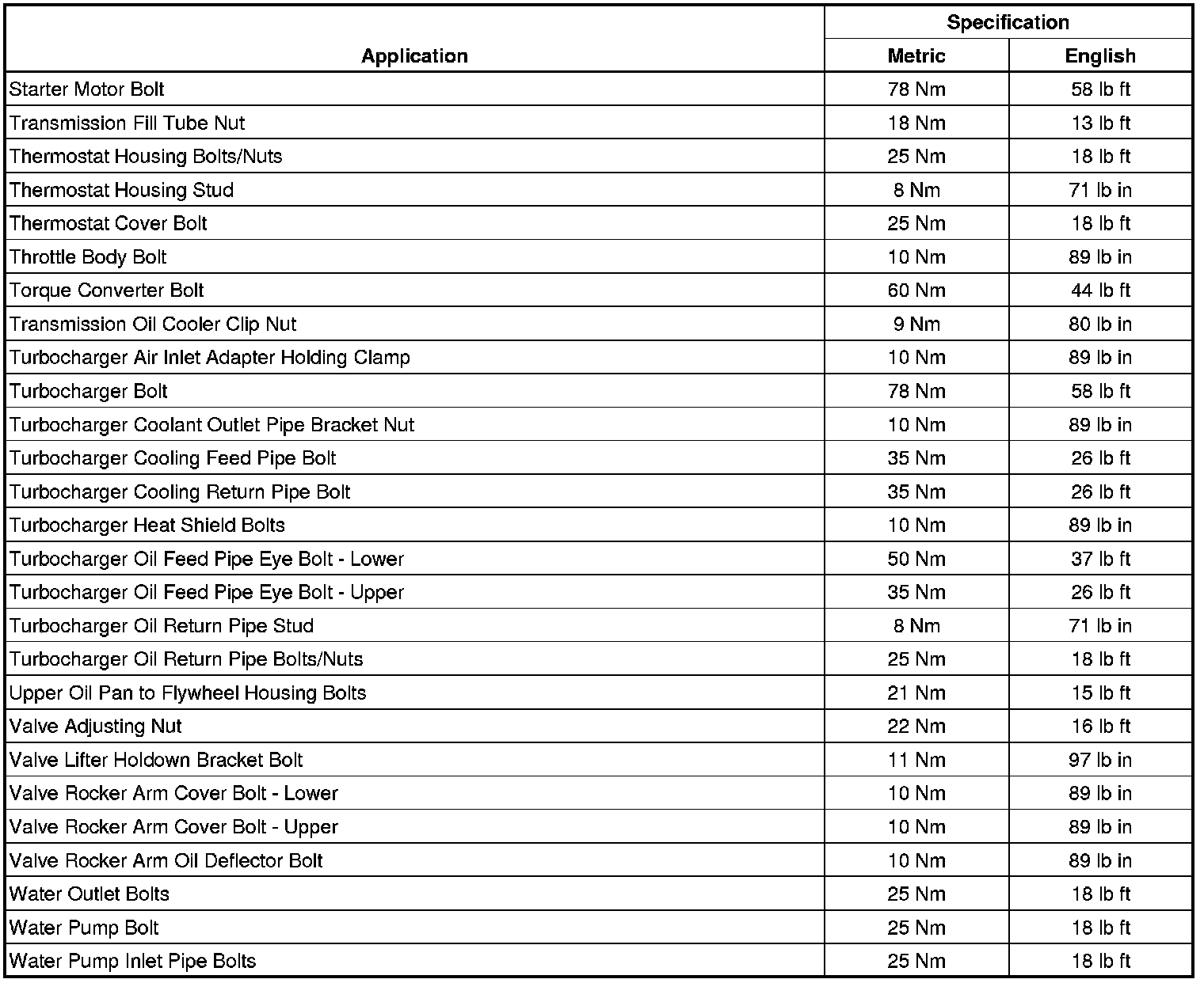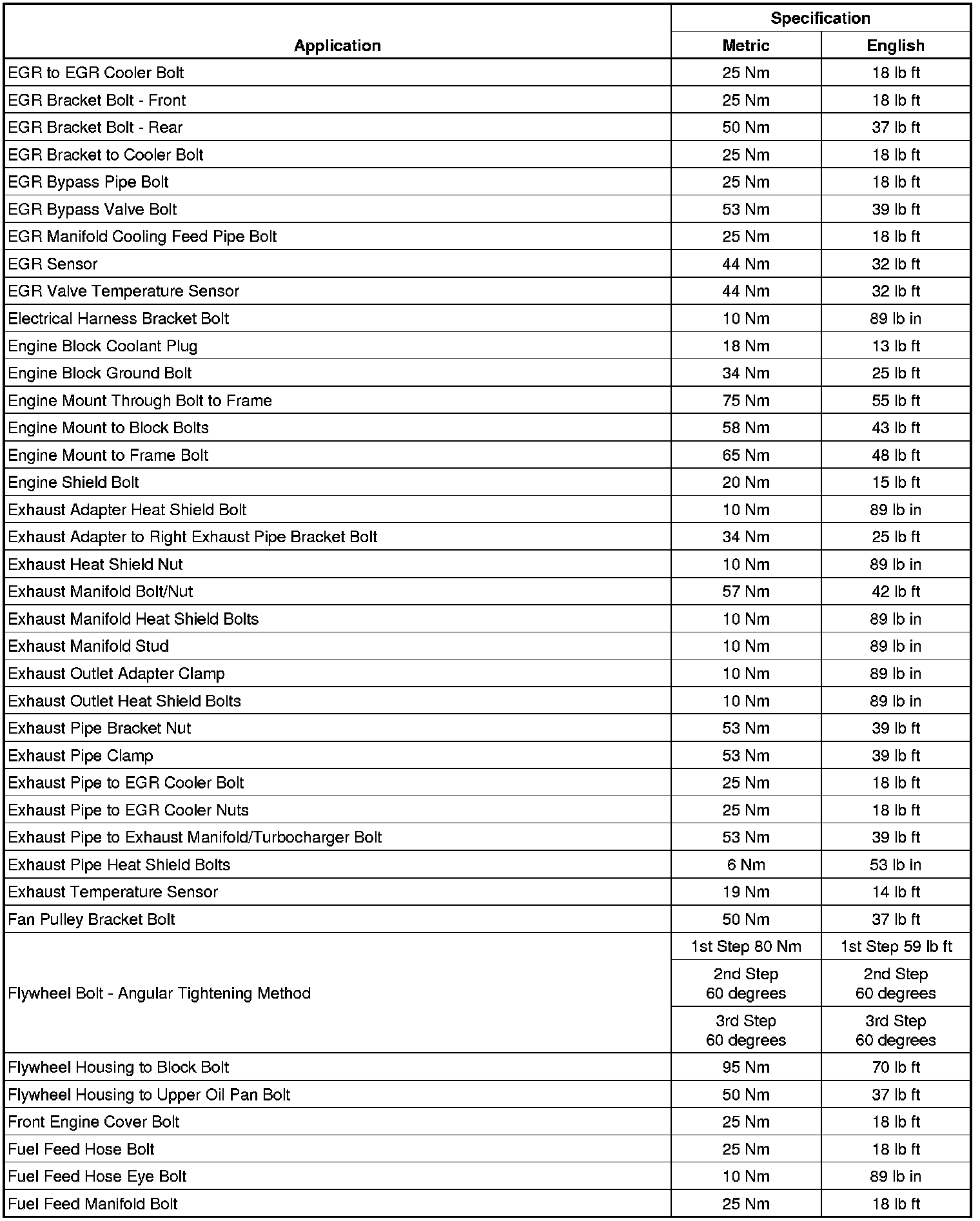 Fastener Tightening Specifications