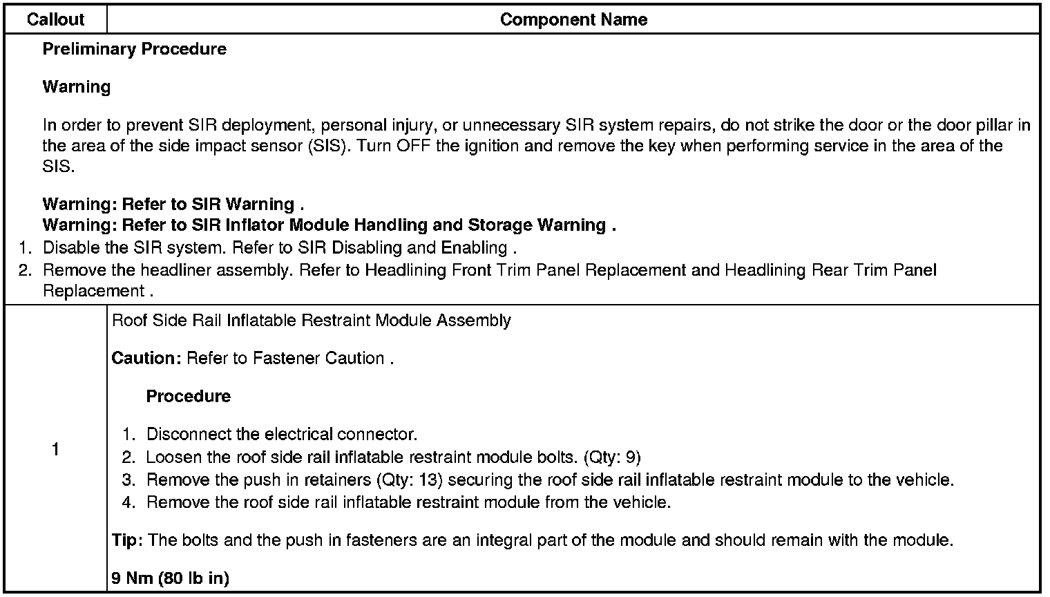 Roof Side Rail Inflatable Restraint Module Replacement