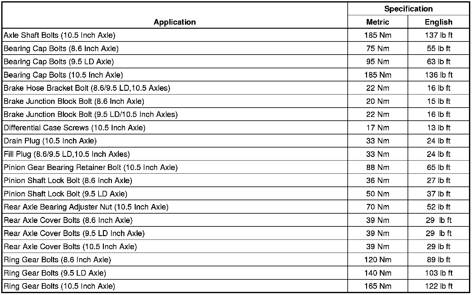 Fastener Tightening Specifications