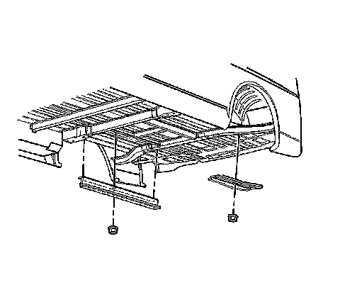 8. Remove the rear floor mat/carpet. Refer to Rear Floor Mat/Carpet Replacement Rear Floor Mat/Carpet Replacement.