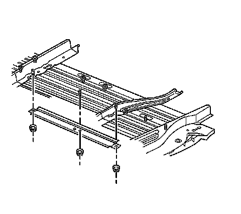 * The 12 passenger extended van and the 15 passenger van reinforcements are used along with the rear seat floor rails. The reinforcements are installed on the underside of the vehicle to the floor rail studs, and held in place by the floor rail retaining nuts. If you remove the reinforcements, reinstall the reinforcements.