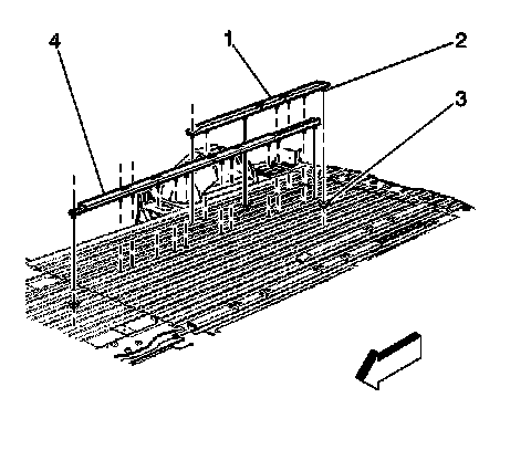 5. Remove the nuts (3) that retain the floor rail to the floor of the vehicle.