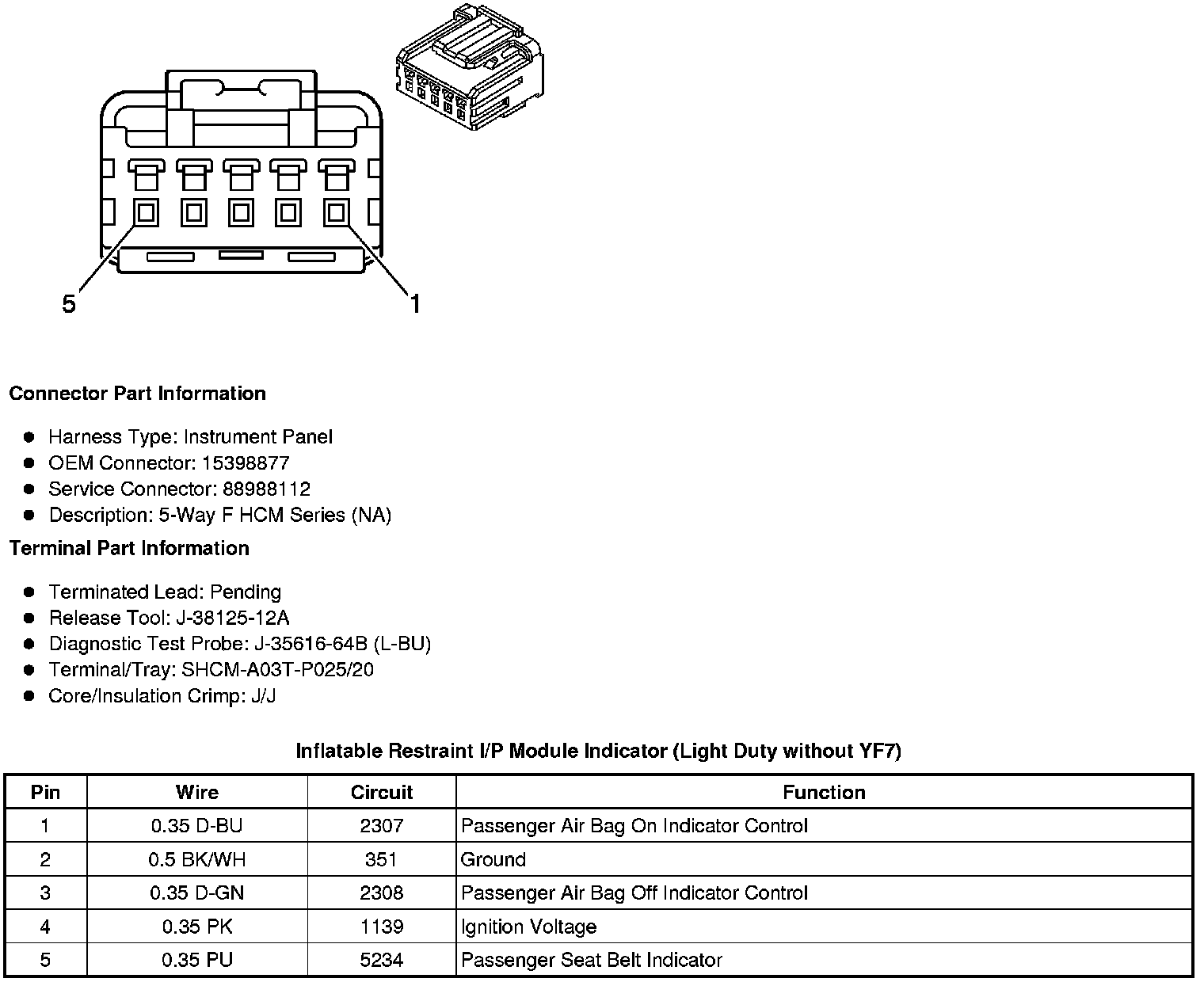 Inflatable Restraint I/P Module Indicator (Light Duty without YF7)