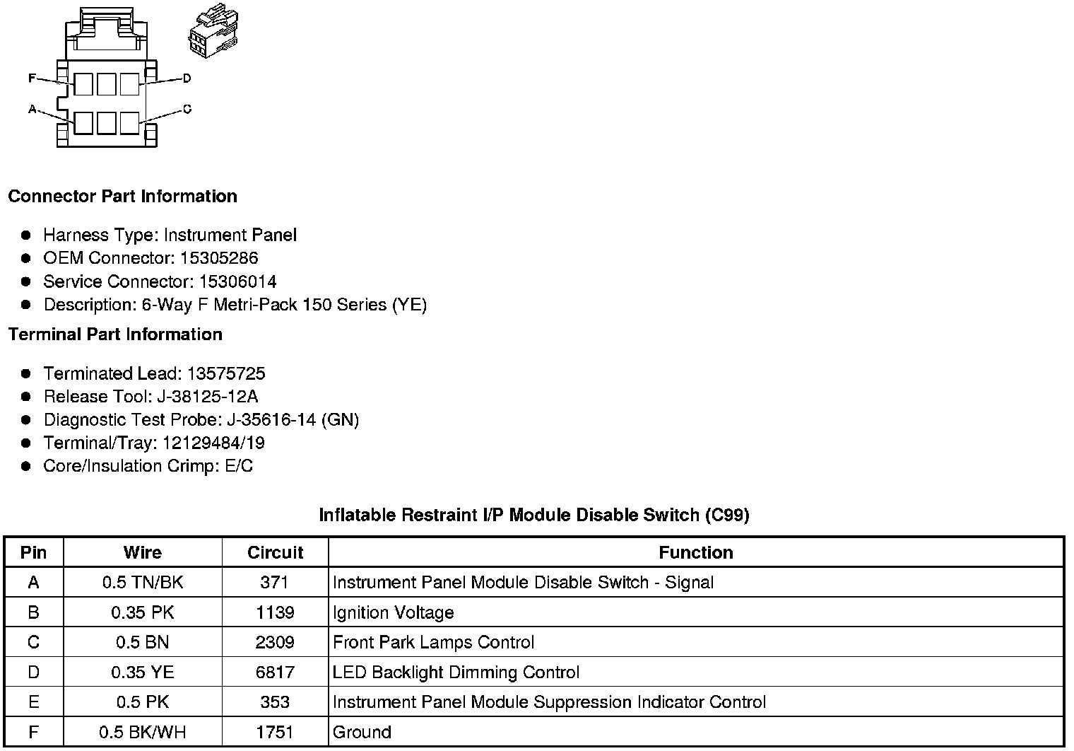 Inflatable Restraint I/P Module Disable Switch (C99)