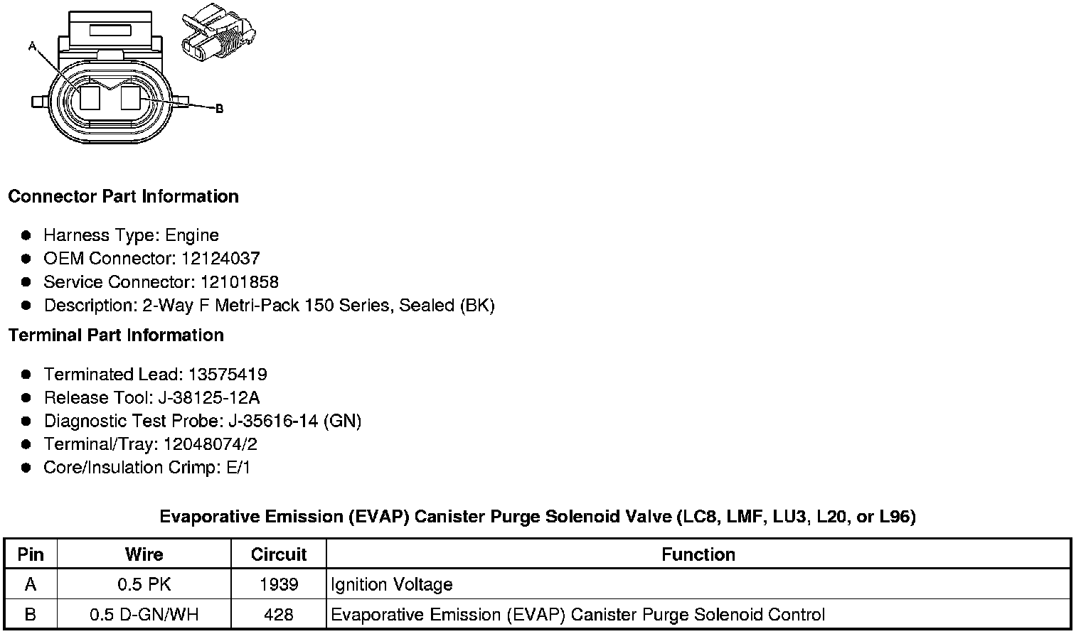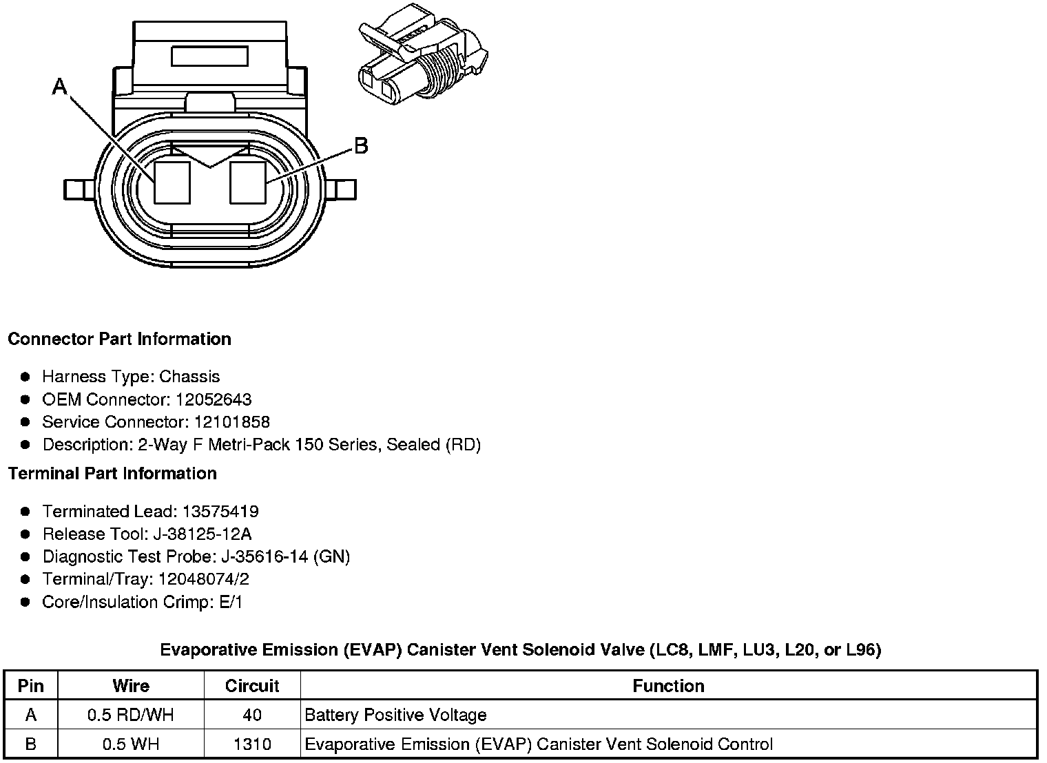 Evaporative Emission (EVAP) Canister Purge Solenoid Valve (LC8, LMF, LU3, L20, or L96)