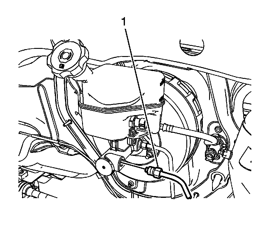5. Disconnect the master cylinder secondary brake pipe fitting (1).