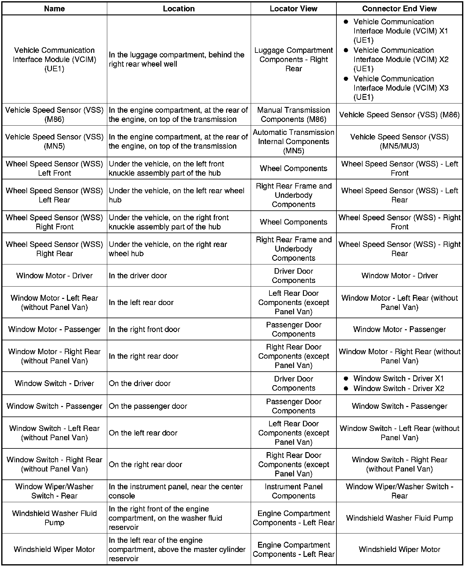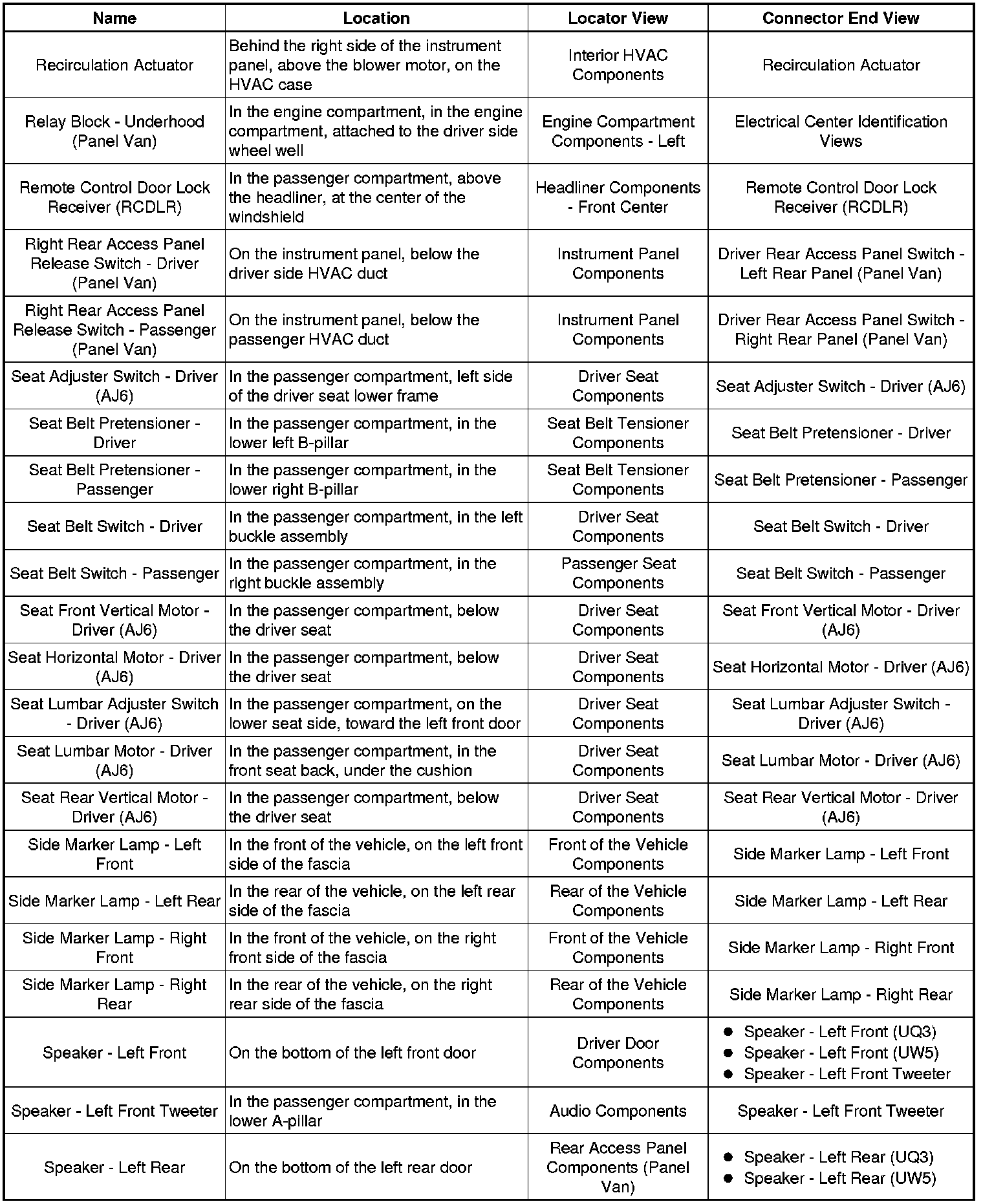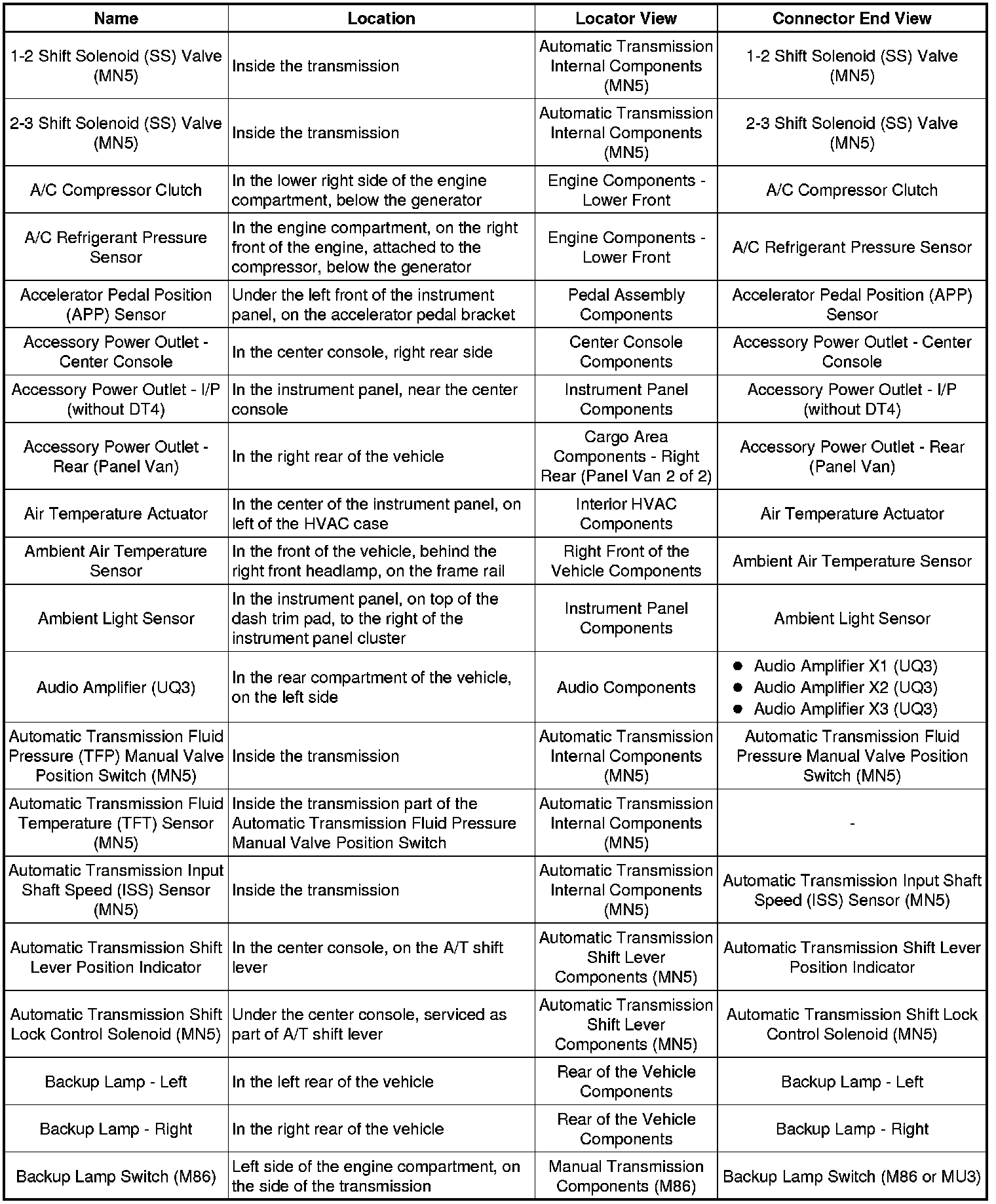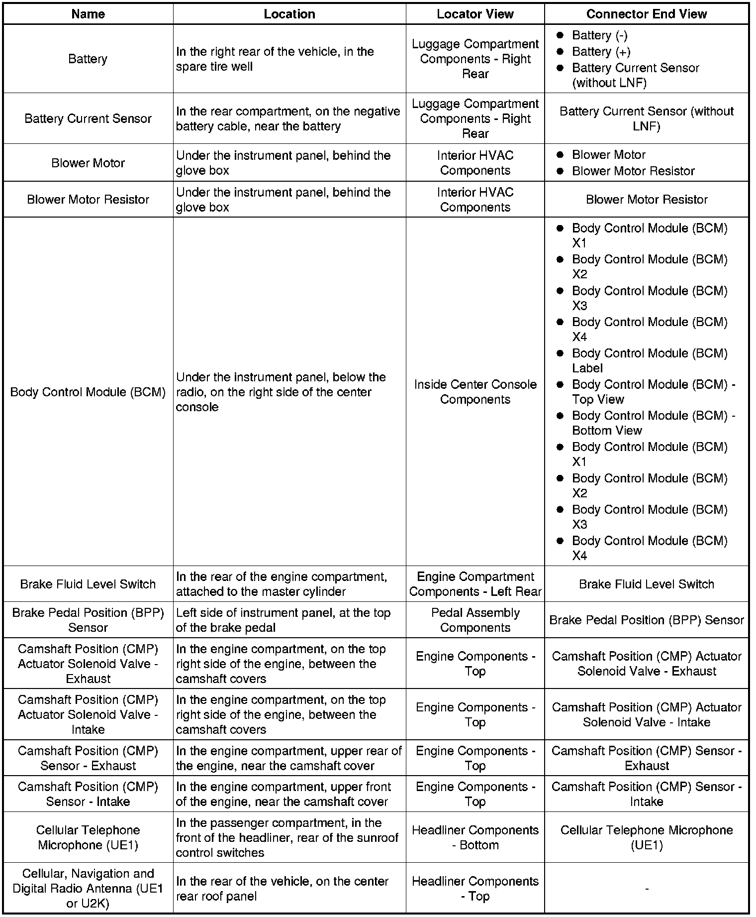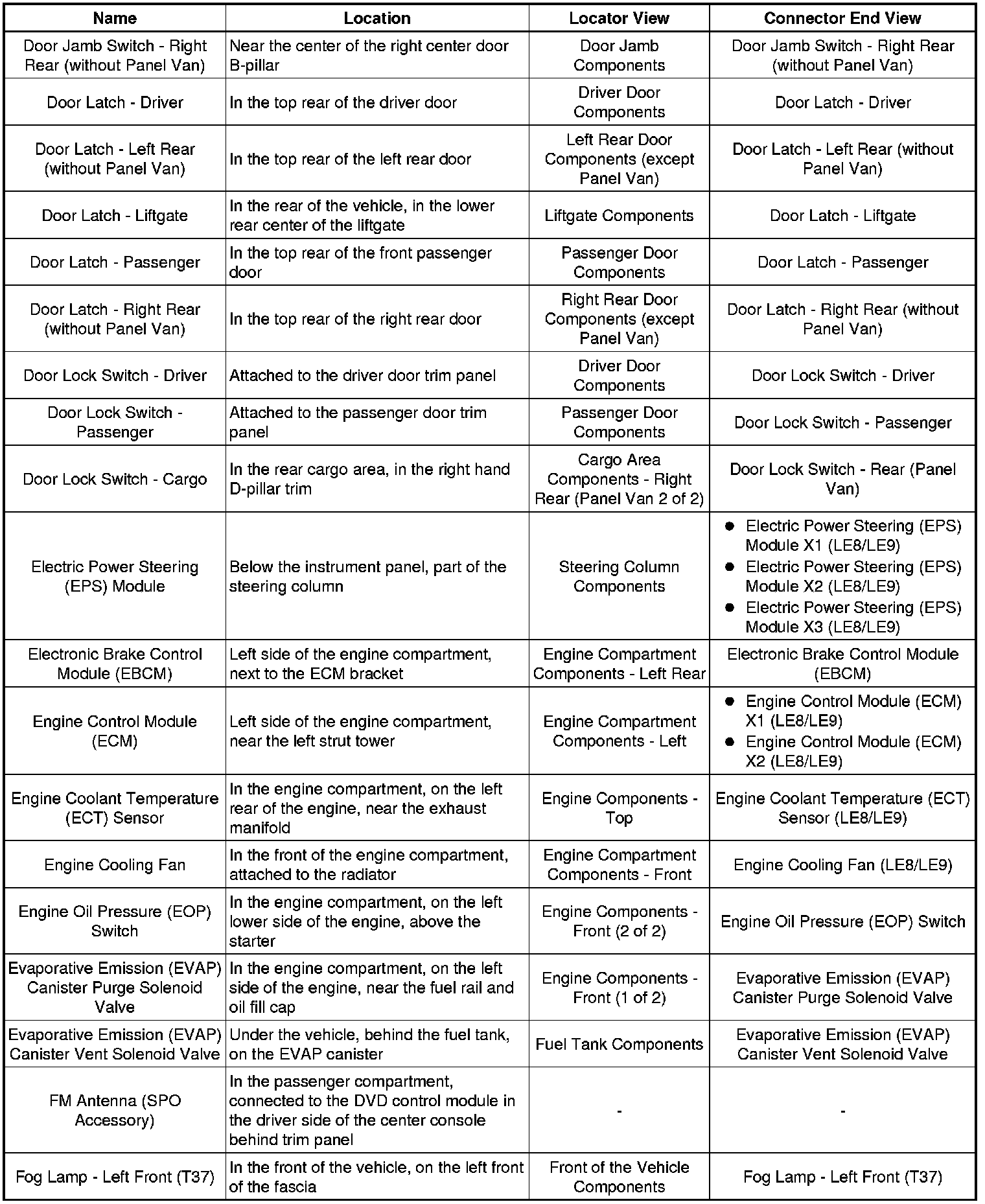 Master Electrical Component List