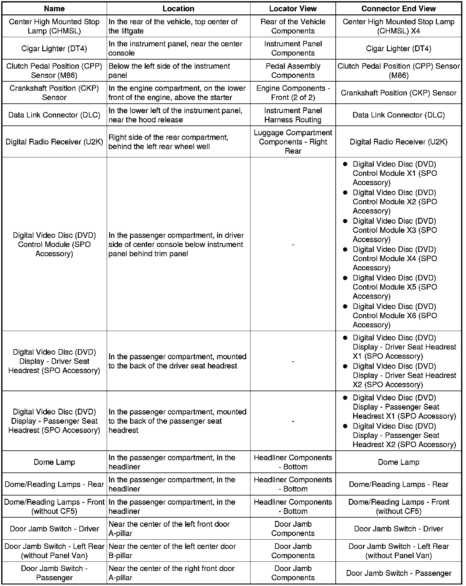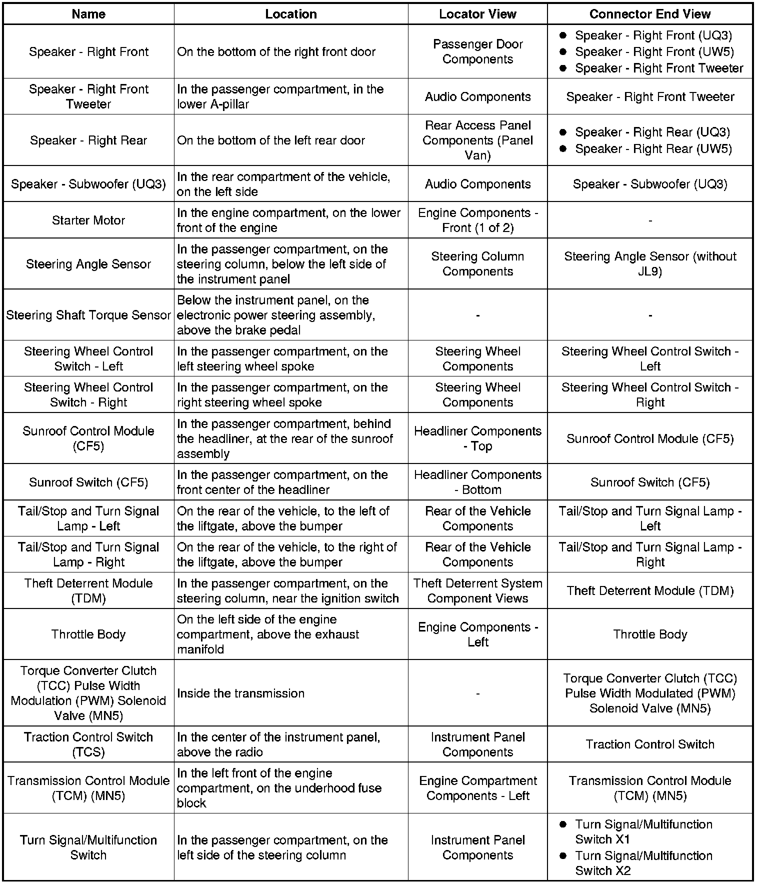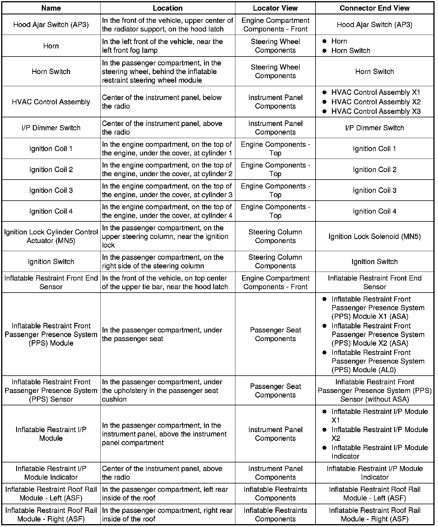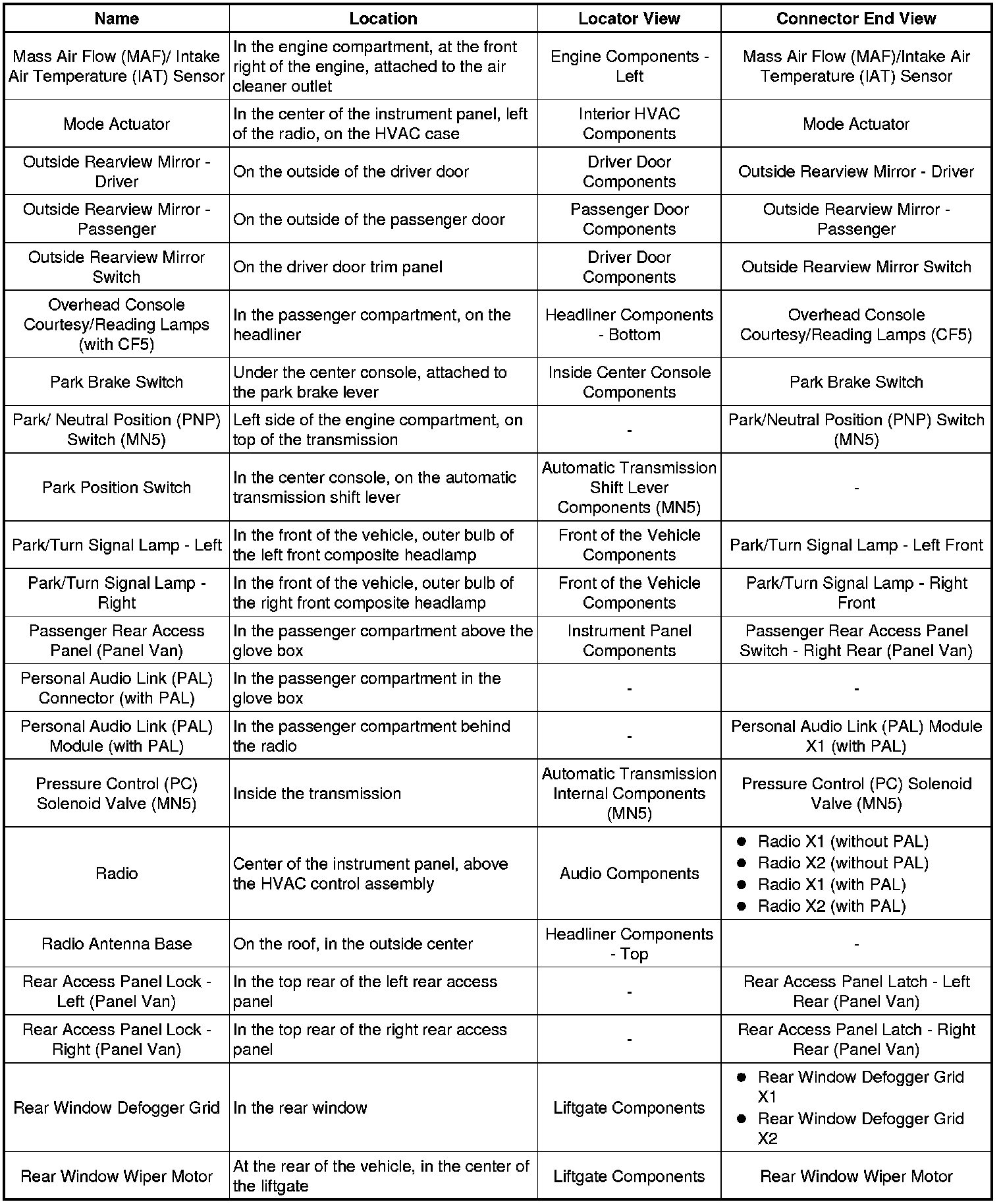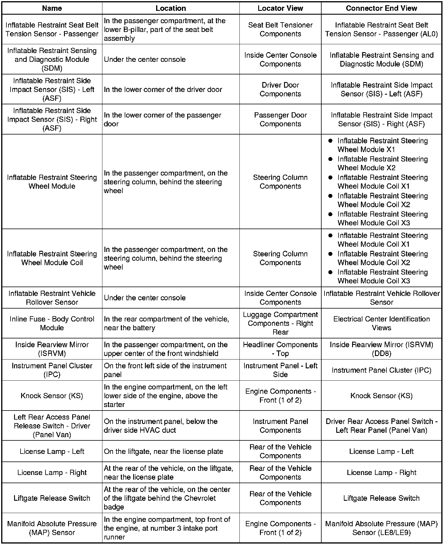 Master Electrical Component List