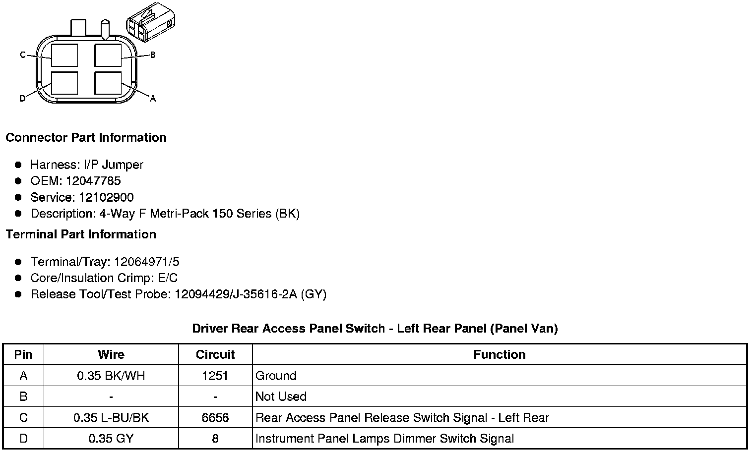 Driver Rear Access Panel Switch - Left Rear Panel (Panel Van)