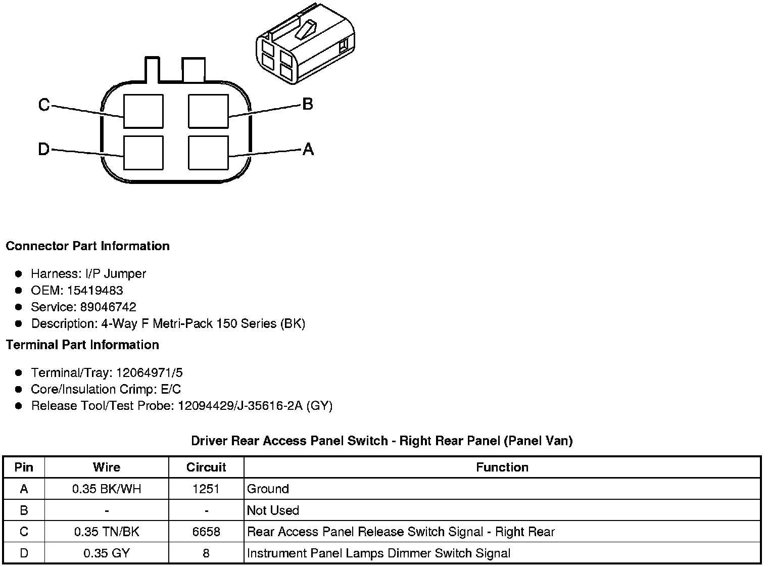 Passenger Rear Access Panel Switch - Right Rear (Panel Van)