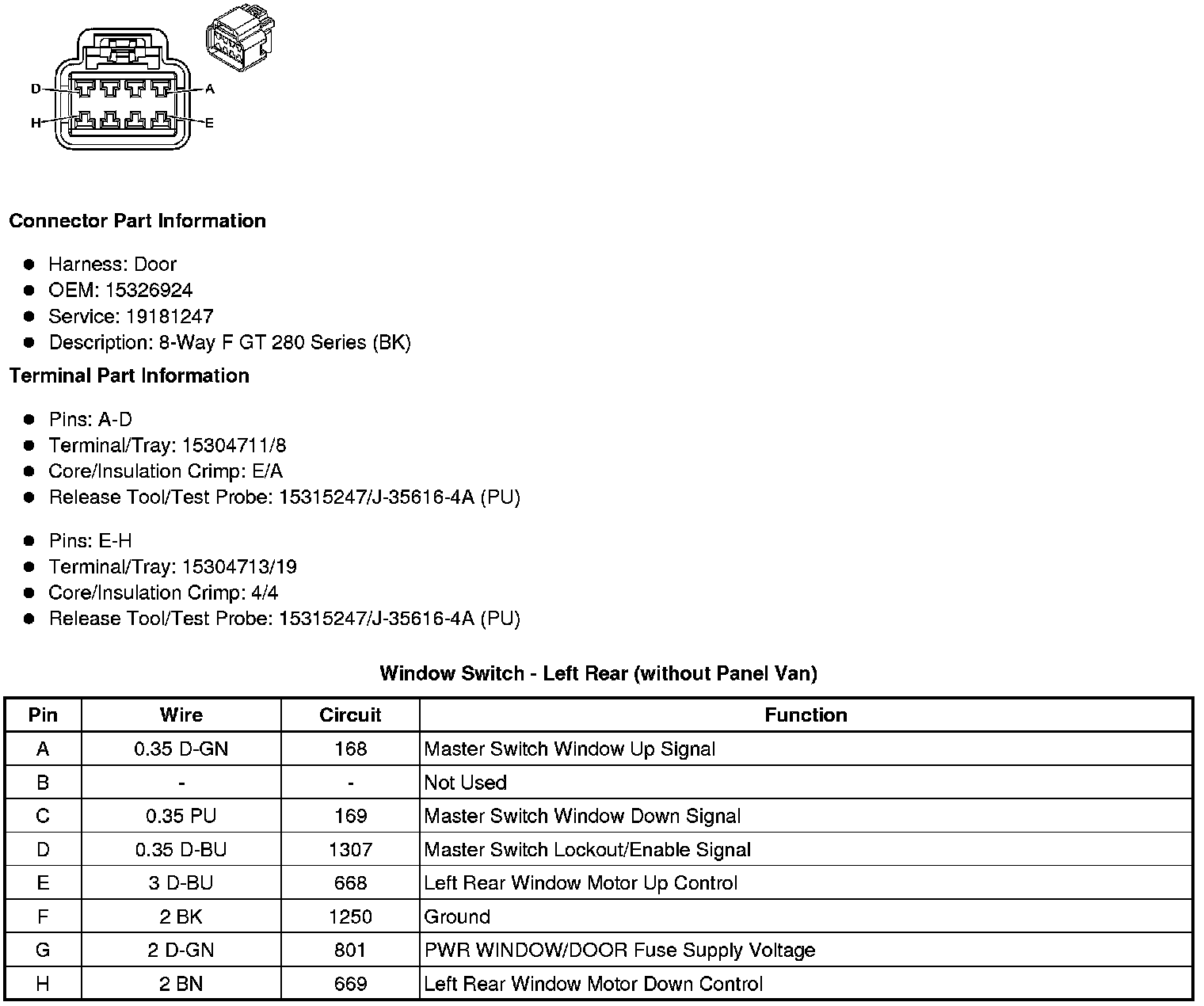 Window Switch - Left Rear (without Panel Van)