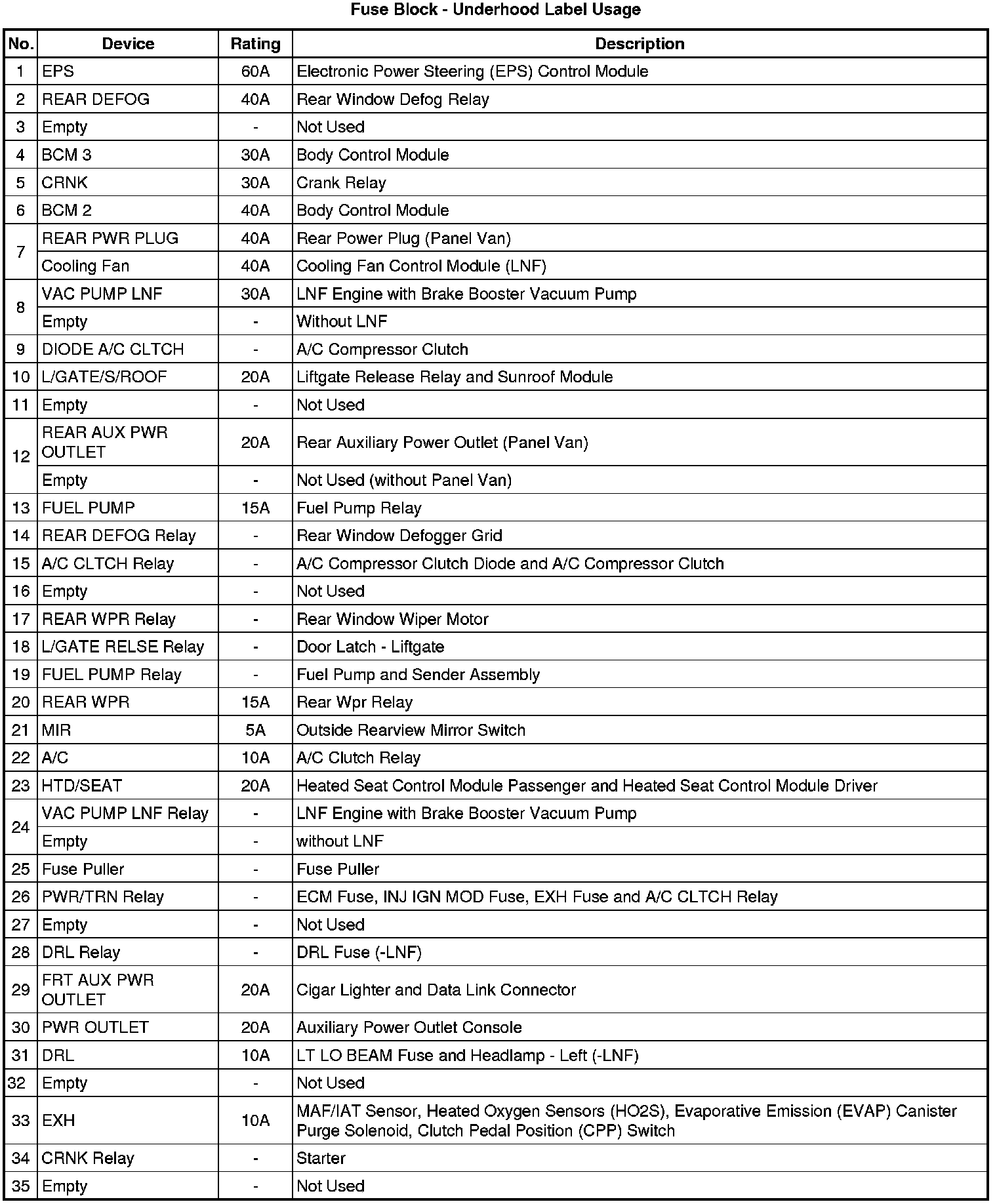 Fuse Block - Underhood Label