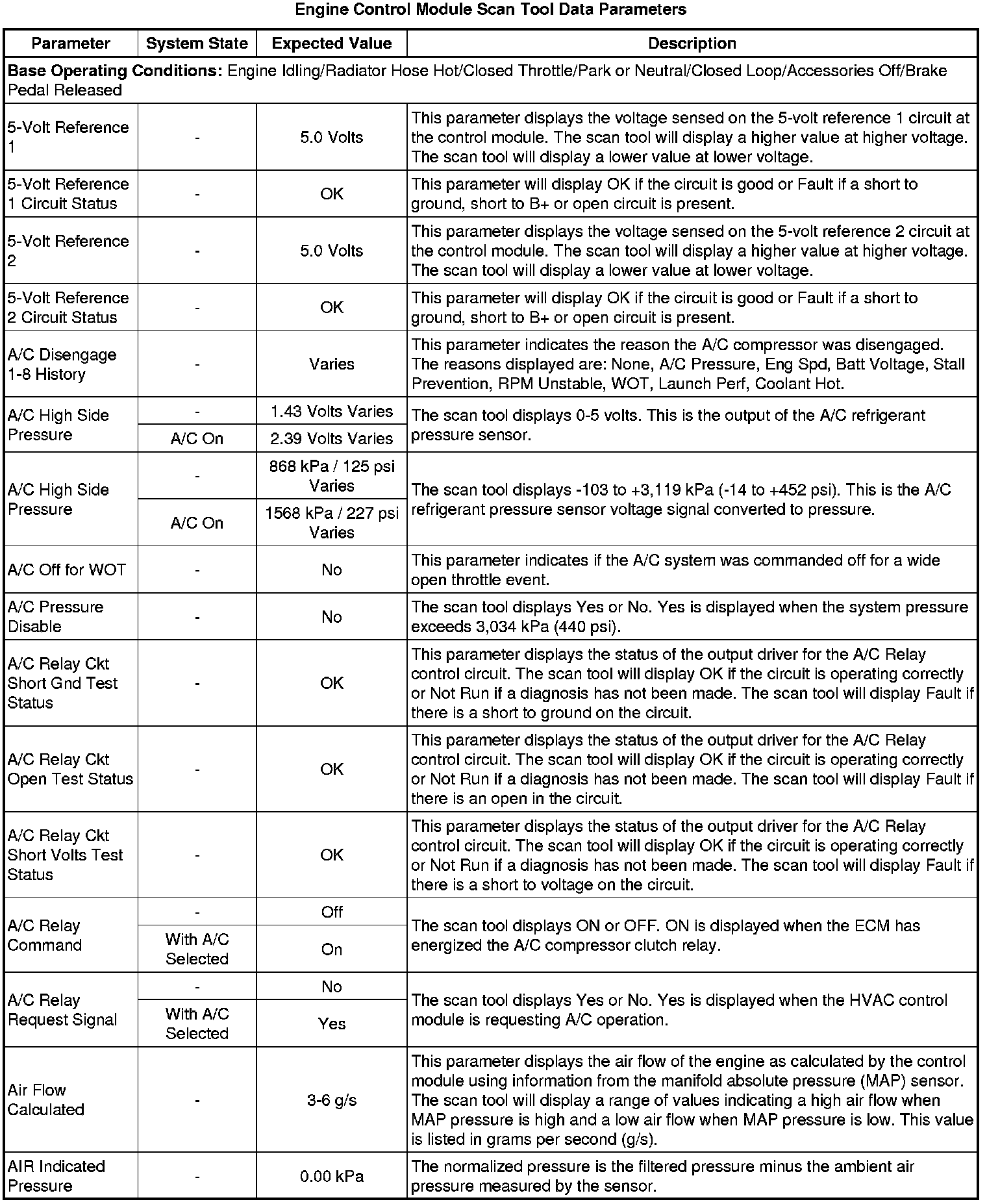 The Engine Control Module Scan Tool Data List contains all engine-related parameters that are available on the scan tool. The list is arranged in alphabetical order. A given parameter may appear in any one of the data lists, and in some cases may appear more than once, or in more than one data list in order to group certain related parameters together.