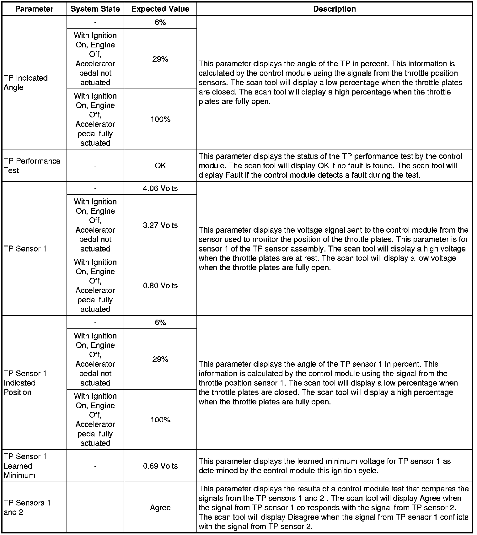 Only the parameters listed below are referenced in this service manual for use in diagnosis. If all values are within the typical range described below, refer to Symptoms - Engine Controls (Symptoms - Engine Controls).