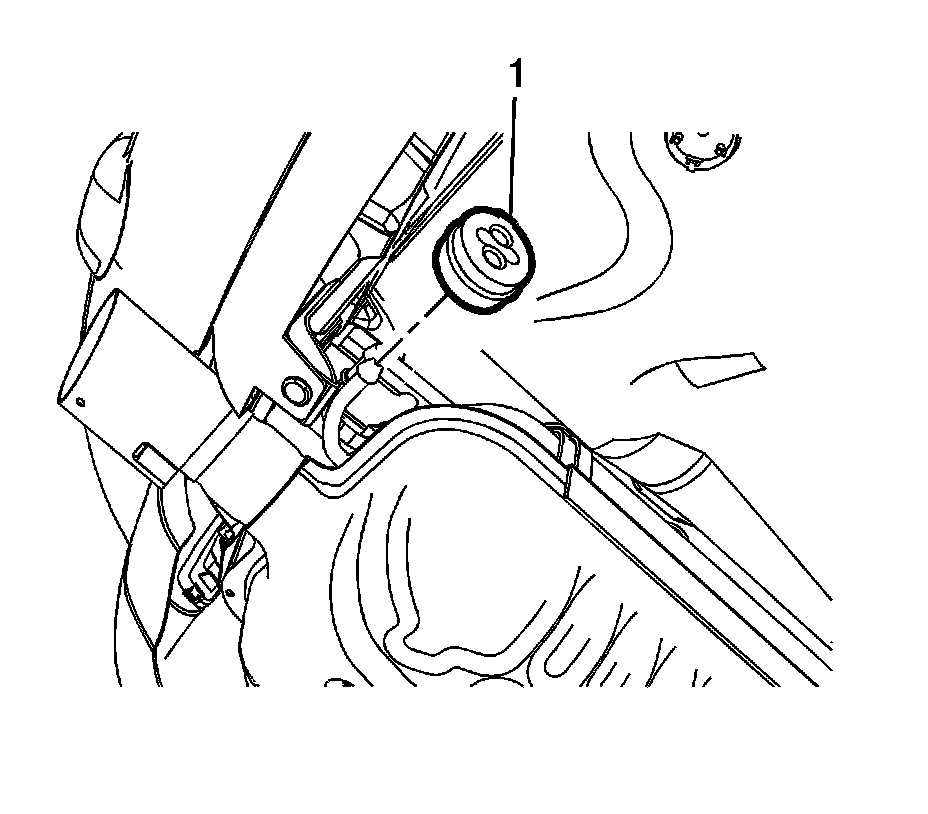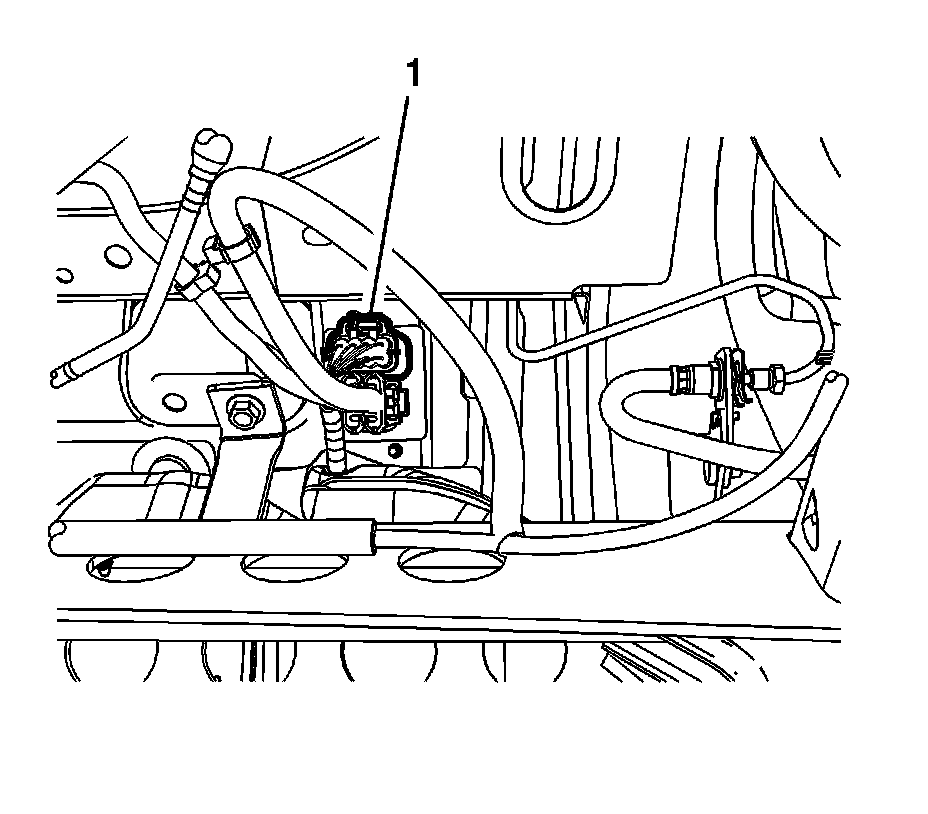 4. Disconnect the fuel tank vent pipe quick connect fitting (1) from the evaporative emission canister. Refer to Plastic Collar Quick Connect Fitting Service (Plastic Collar Quick Connect Fitting Service).