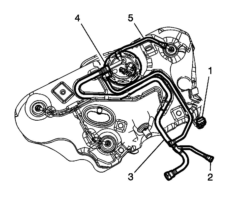 14. If replacing the fuel tank, perform the following steps. Remove the fuel tank vent pipes (3, 5). Refer to Plastic Collar Quick Connect Fitting Service (Plastic Collar Quick Connect Fitting Service).