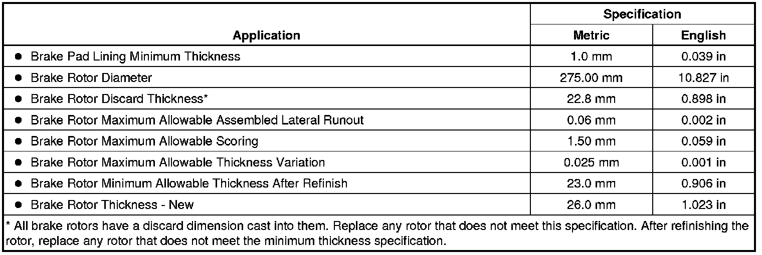 Disc Brake Component Specifications