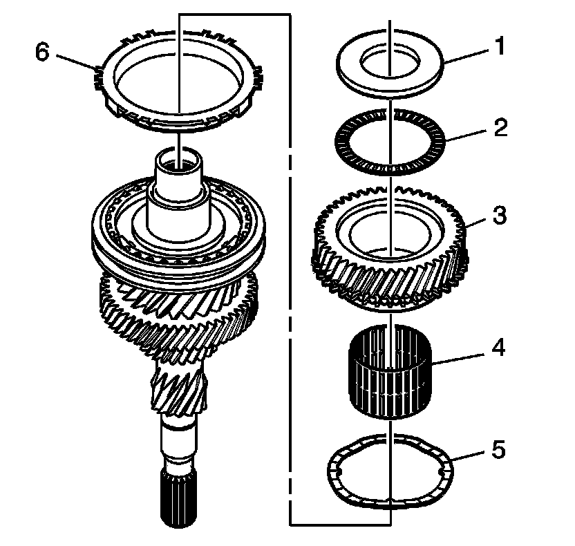 13. Assemble wavy washer (5) to the 4th gear (3) and install.