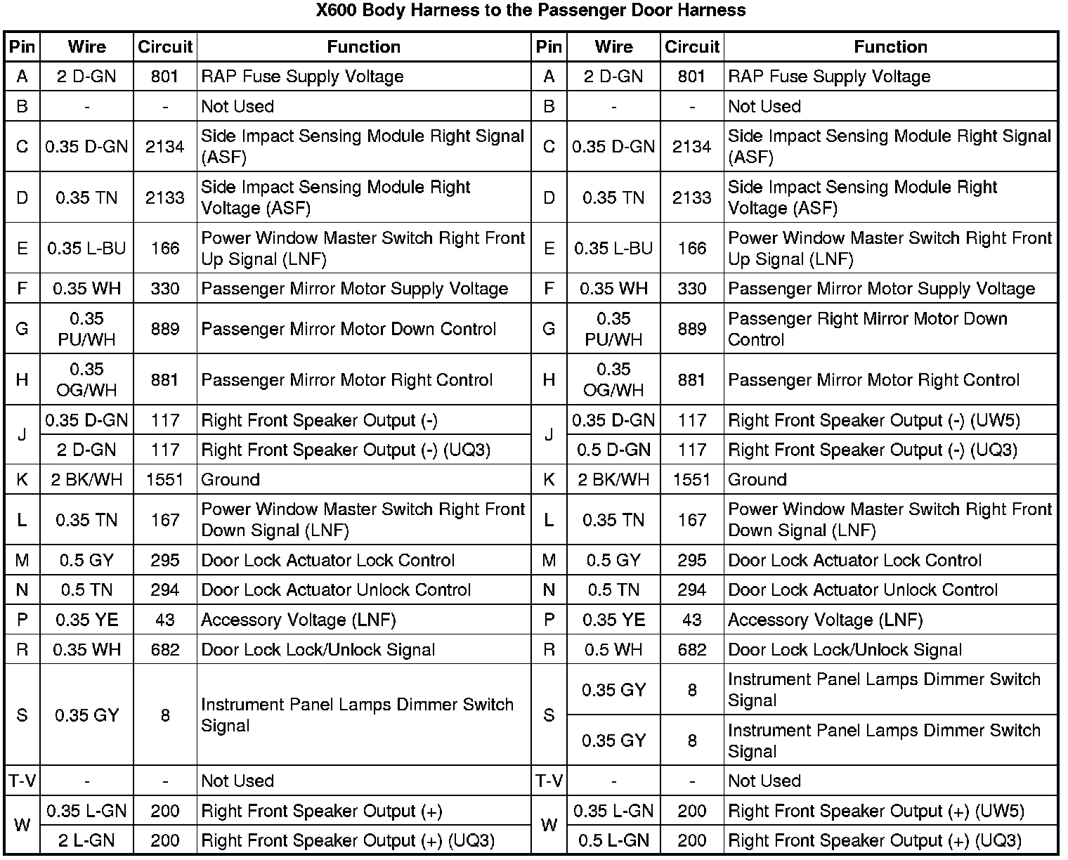 X600 Body Harness to the Passenger Door Harness