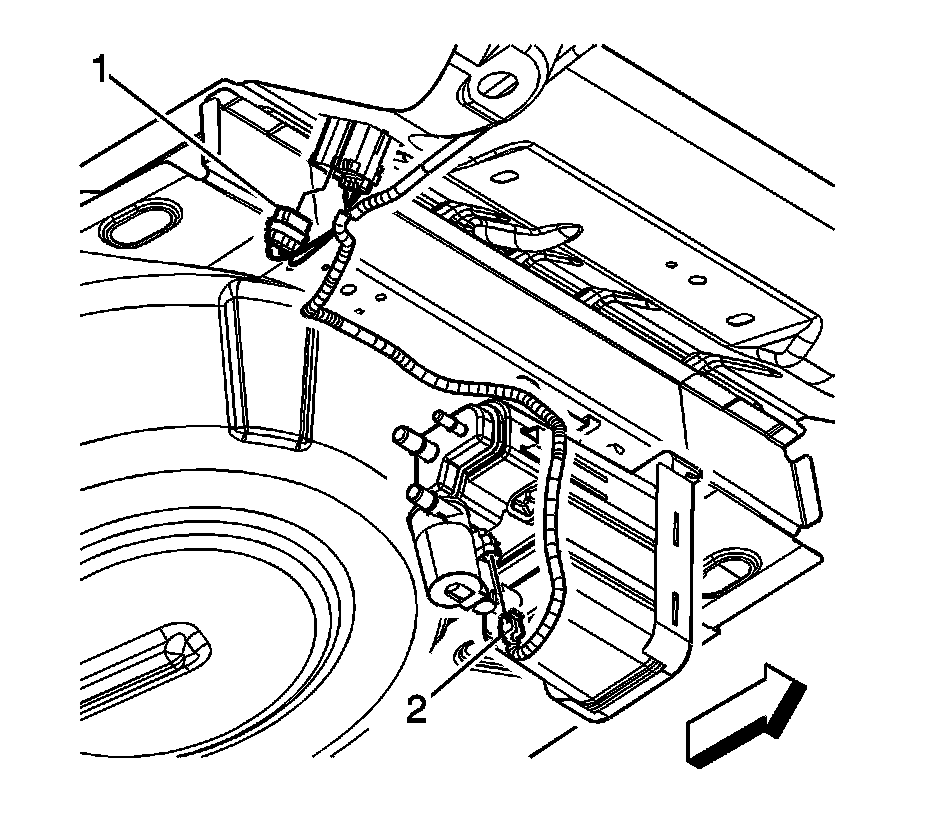 2. Disconnect the evaporative emission (EVAP) canister vent solenoid valve electrical connector (2).