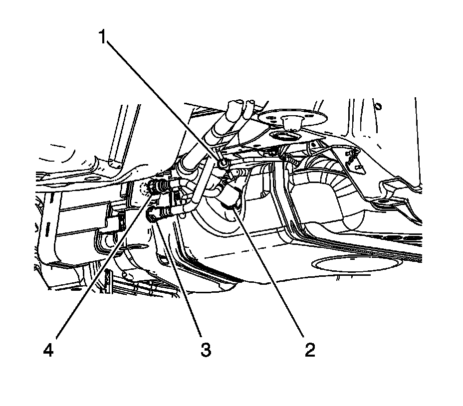 6. Disconnect the fuel vent pipe quick connect fitting (4) from the canister. Refer to Plastic Collar Quick Connect Fitting Service (Plastic Collar Quick Connect Fitting Service).