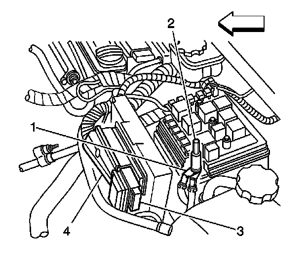 4. Disconnect the positive battery cables (1) from the underhood electrical center.