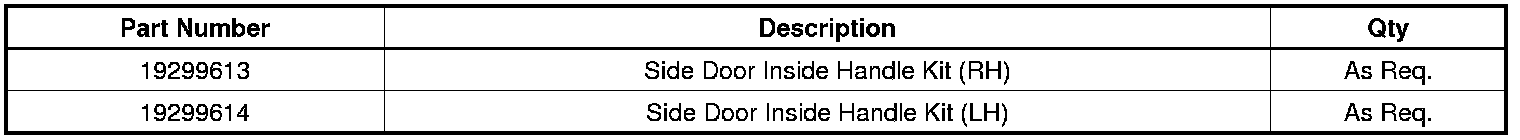 9. Reinstall the interior trim panel on the affected door. Refer to Side Door Trim Panel Replacement in SI. Verify correct operation of the handle.