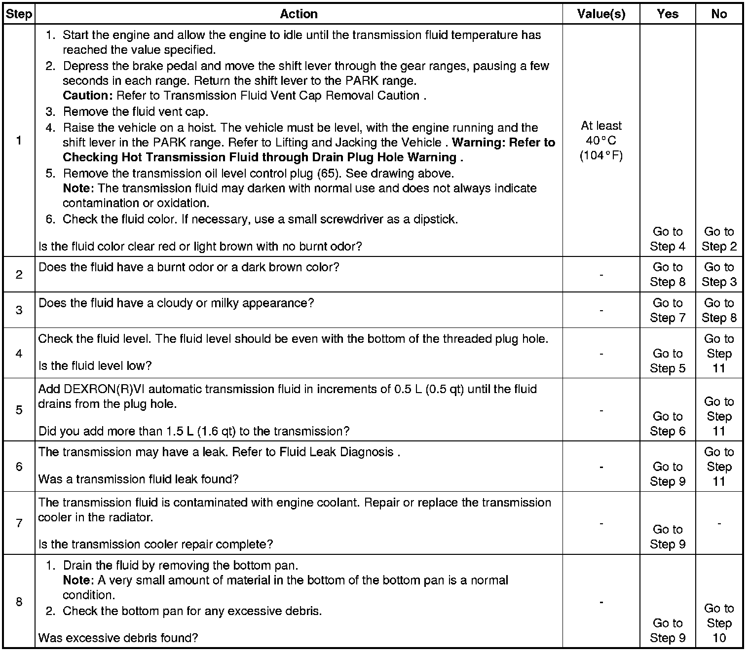Transmission Fluid Level and Condition Check