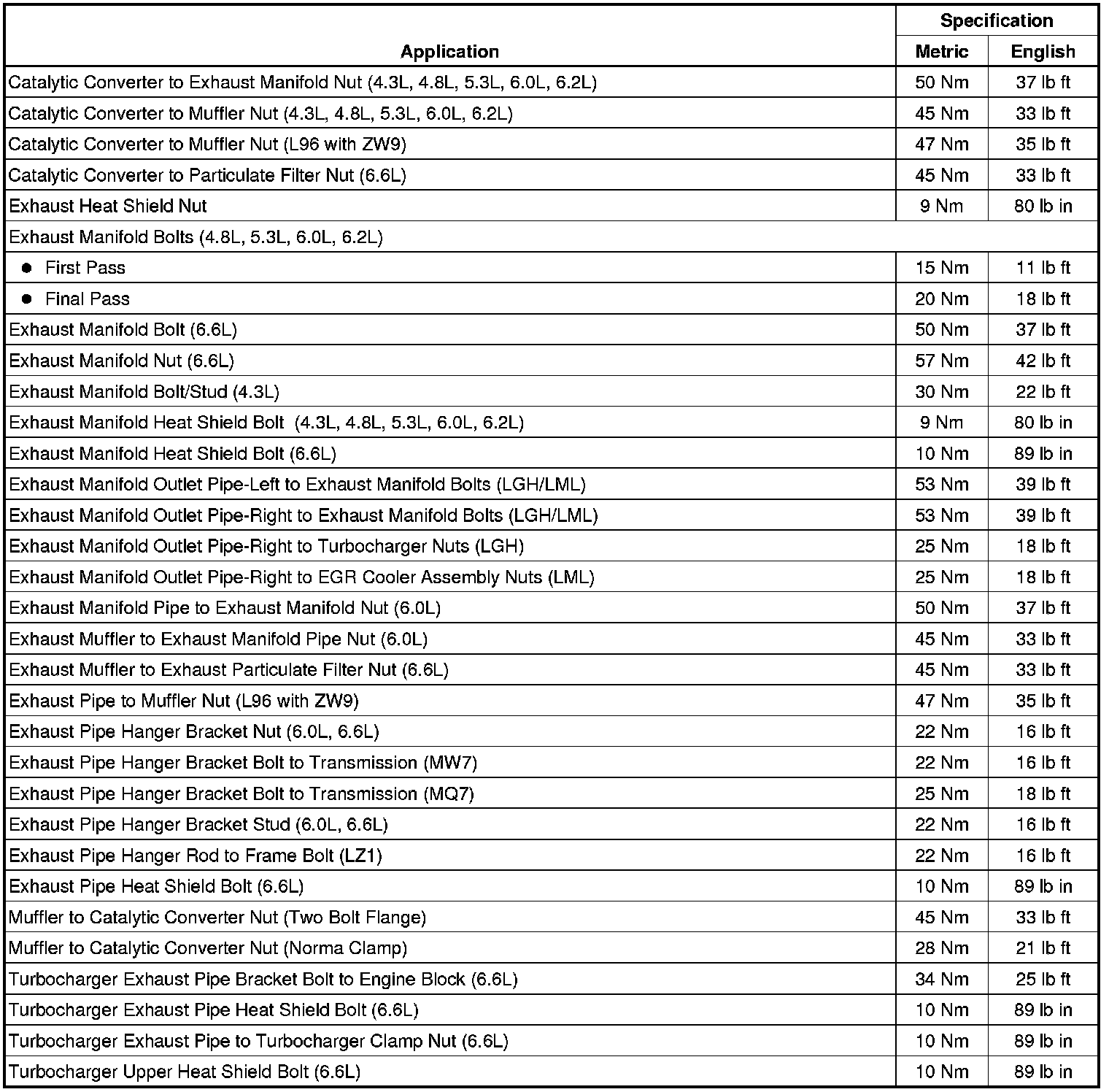 Exhaust System: Specifications